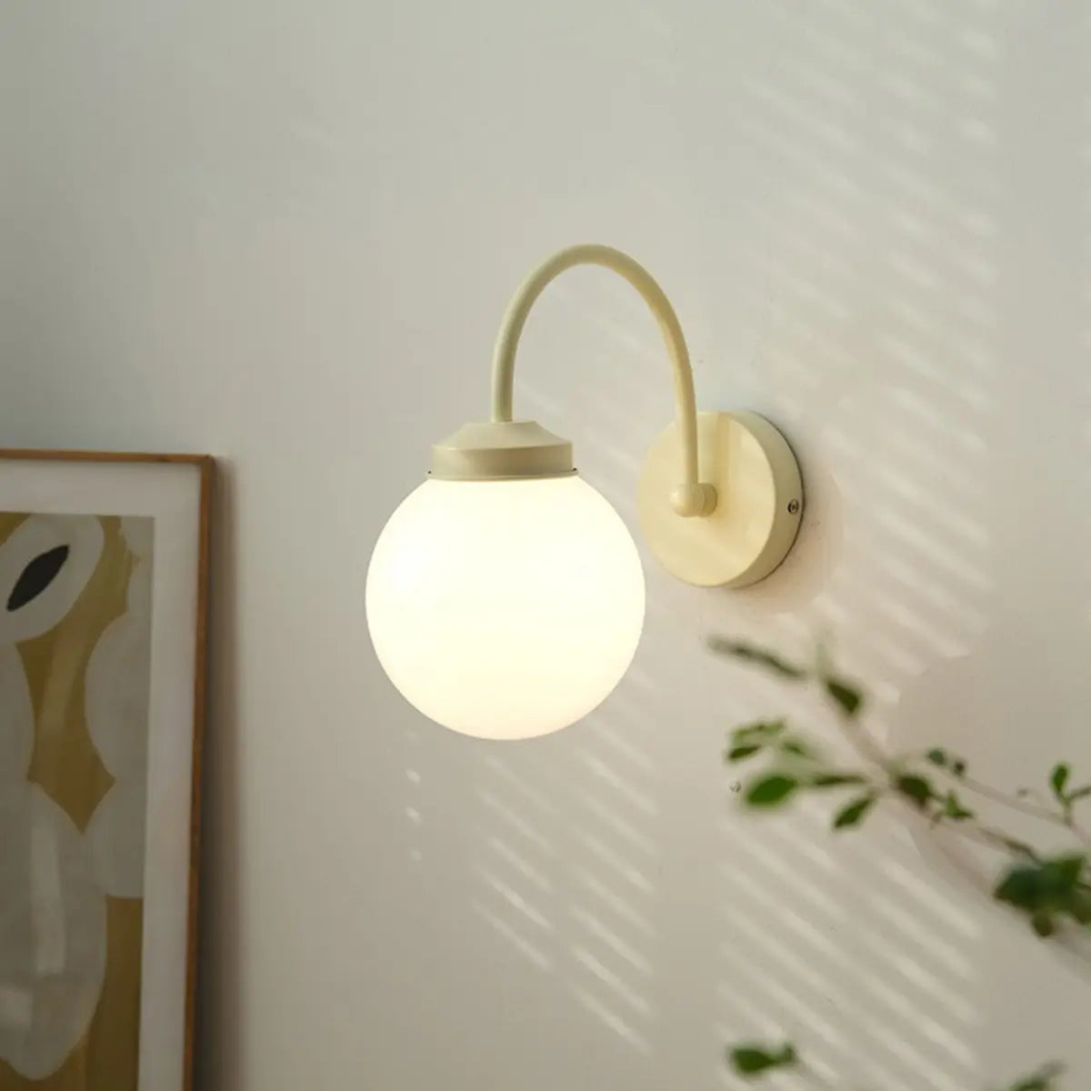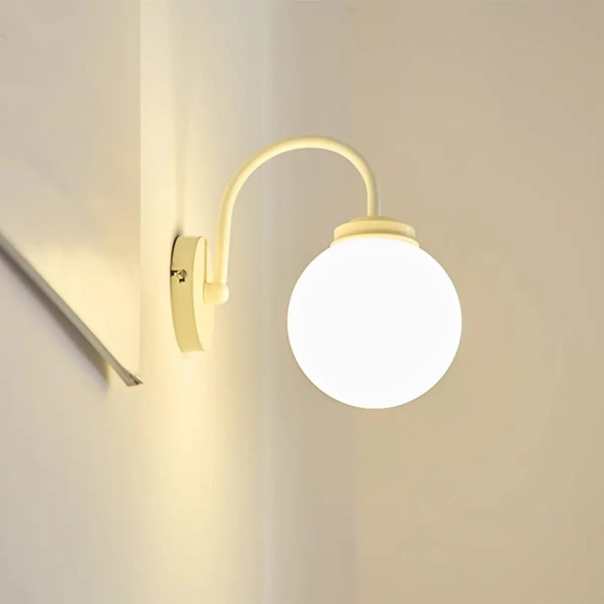 This mini wall lamp adds a unique charm to your interior space with its modern style and graceful curved design. Made of high-grade metal material and white glass lampshade, matched with warm beige, it creates a simple and warm atmosphere.