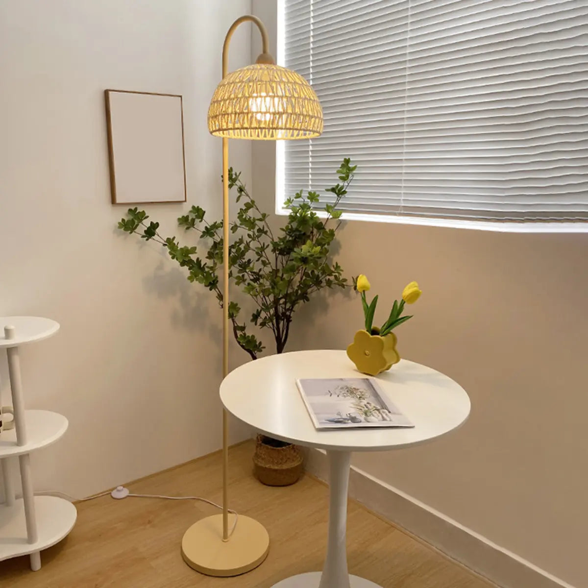 ZOWALA - Minimalist Beige Rattan Dome LED Floor Lamp