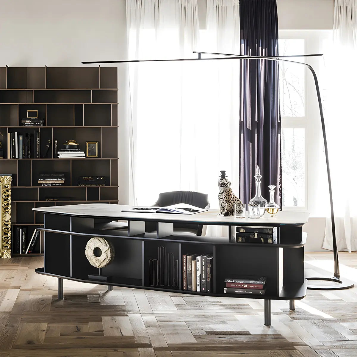 This modern curved floor lamp perfectly combines minimalist design with practical functionality, perfect for any modern home.