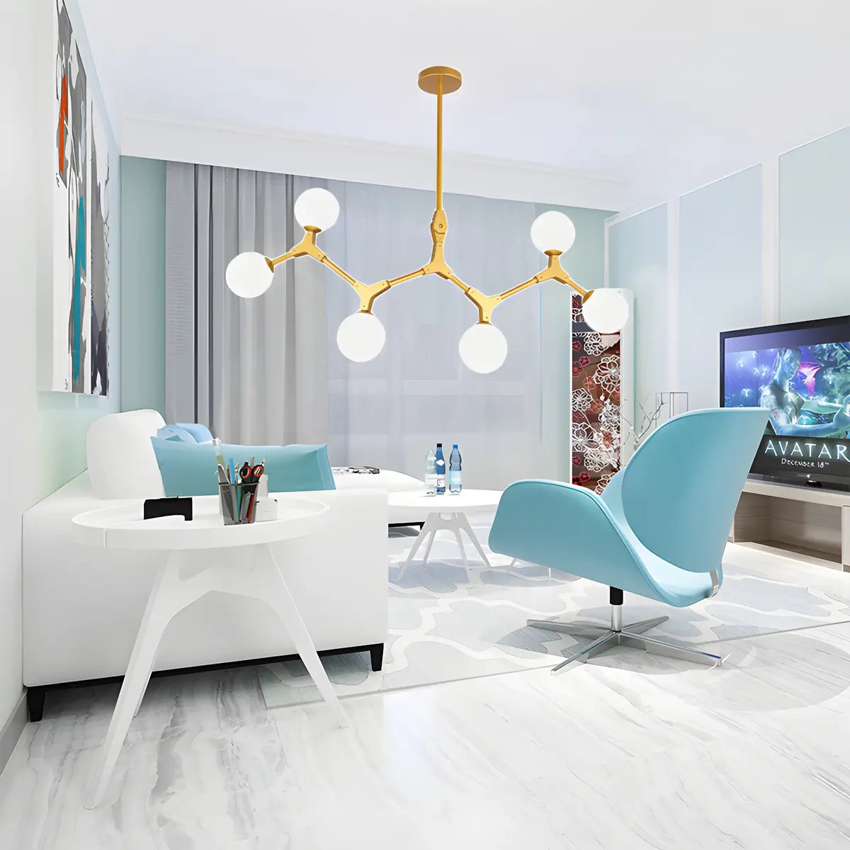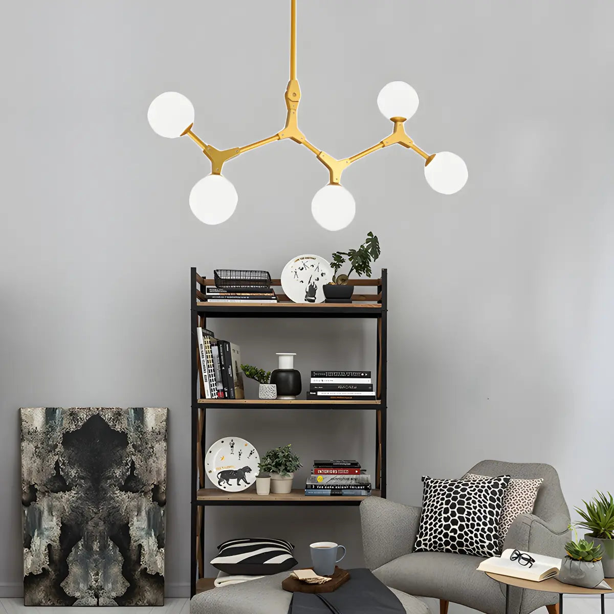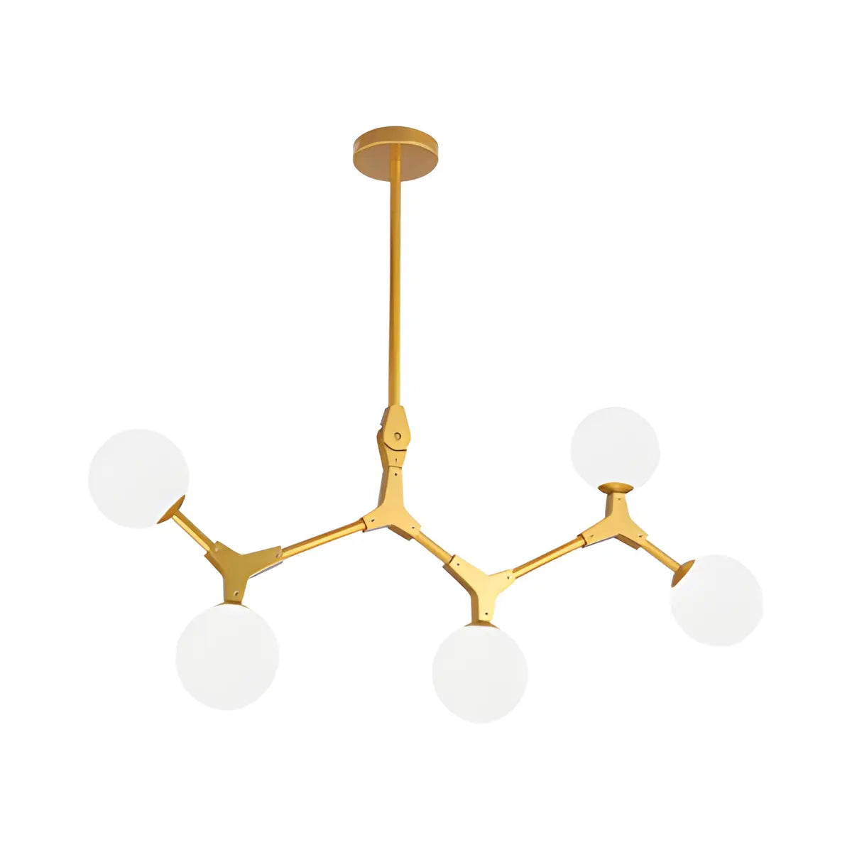 ZOWALA - Gold Industrial Branch White Globe Chandelier