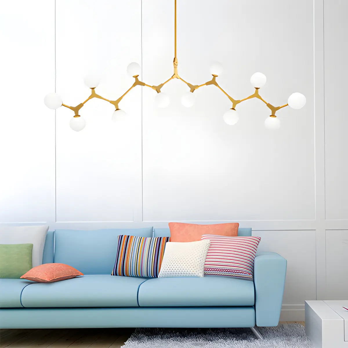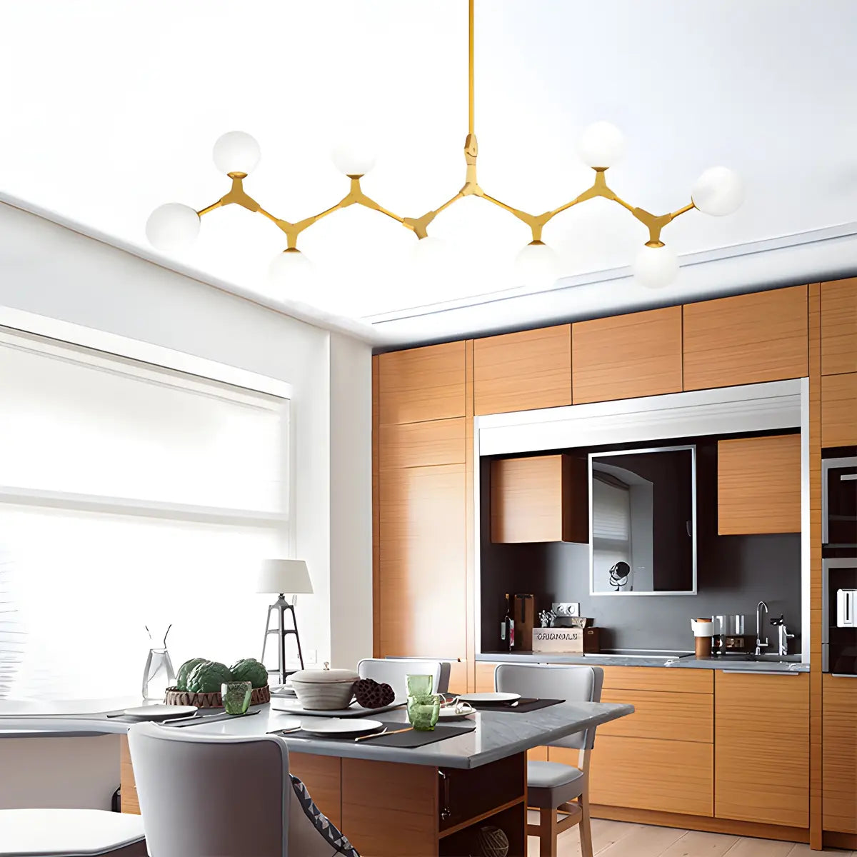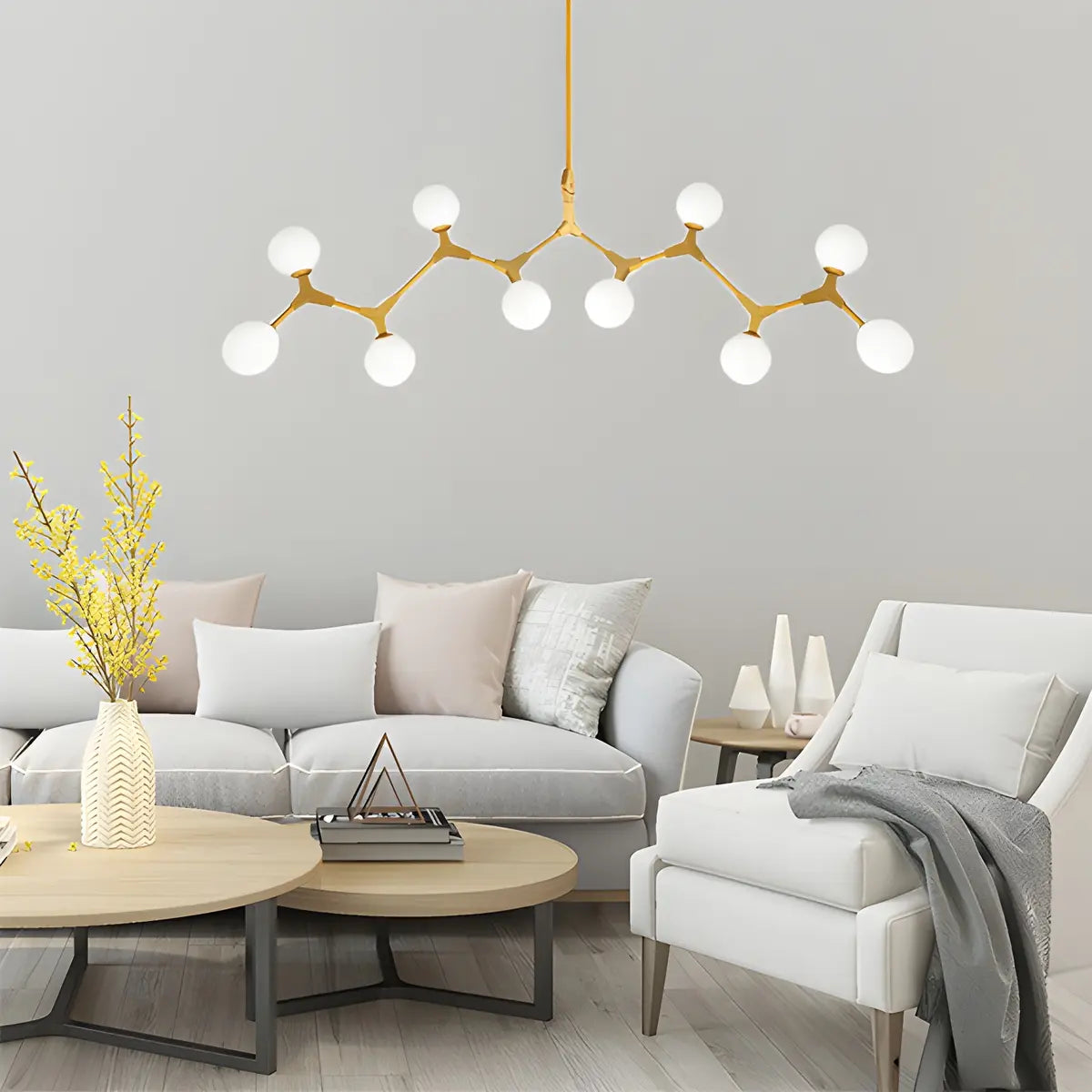 ZOWALA - Gold Industrial Branch White Globe Chandelier