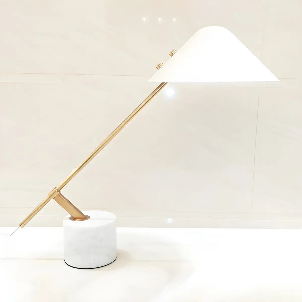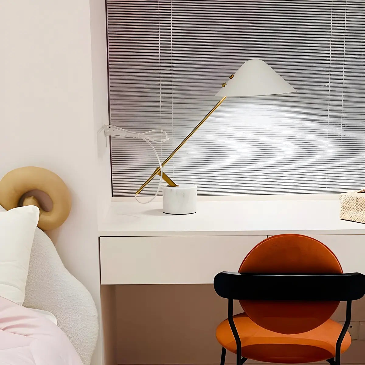 ZOWALA - Minimalist Gold Arm Metal Cone White Table Lamp
