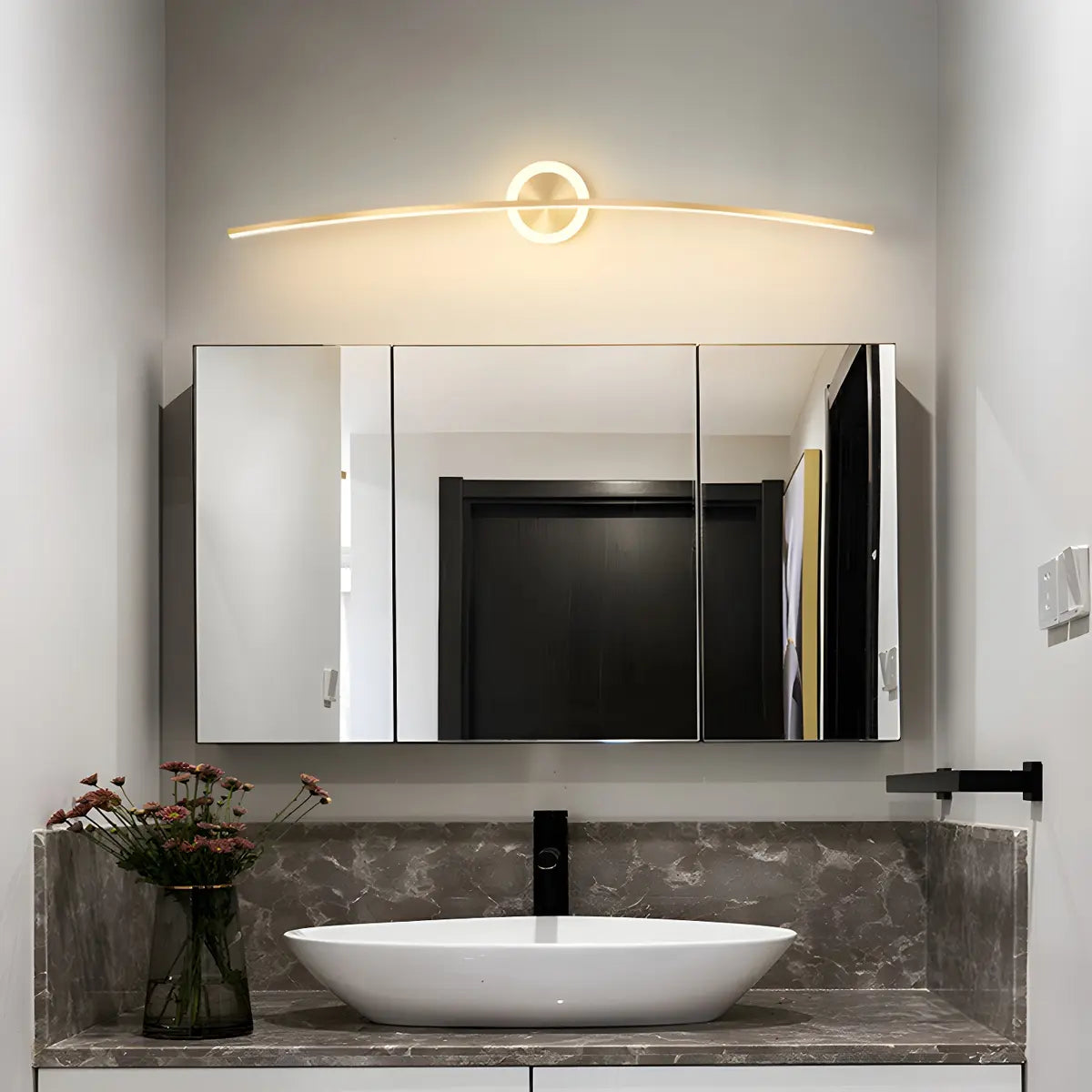 ZOWALA - Minimalist Gold Curved Round Linear LED Vainity Light