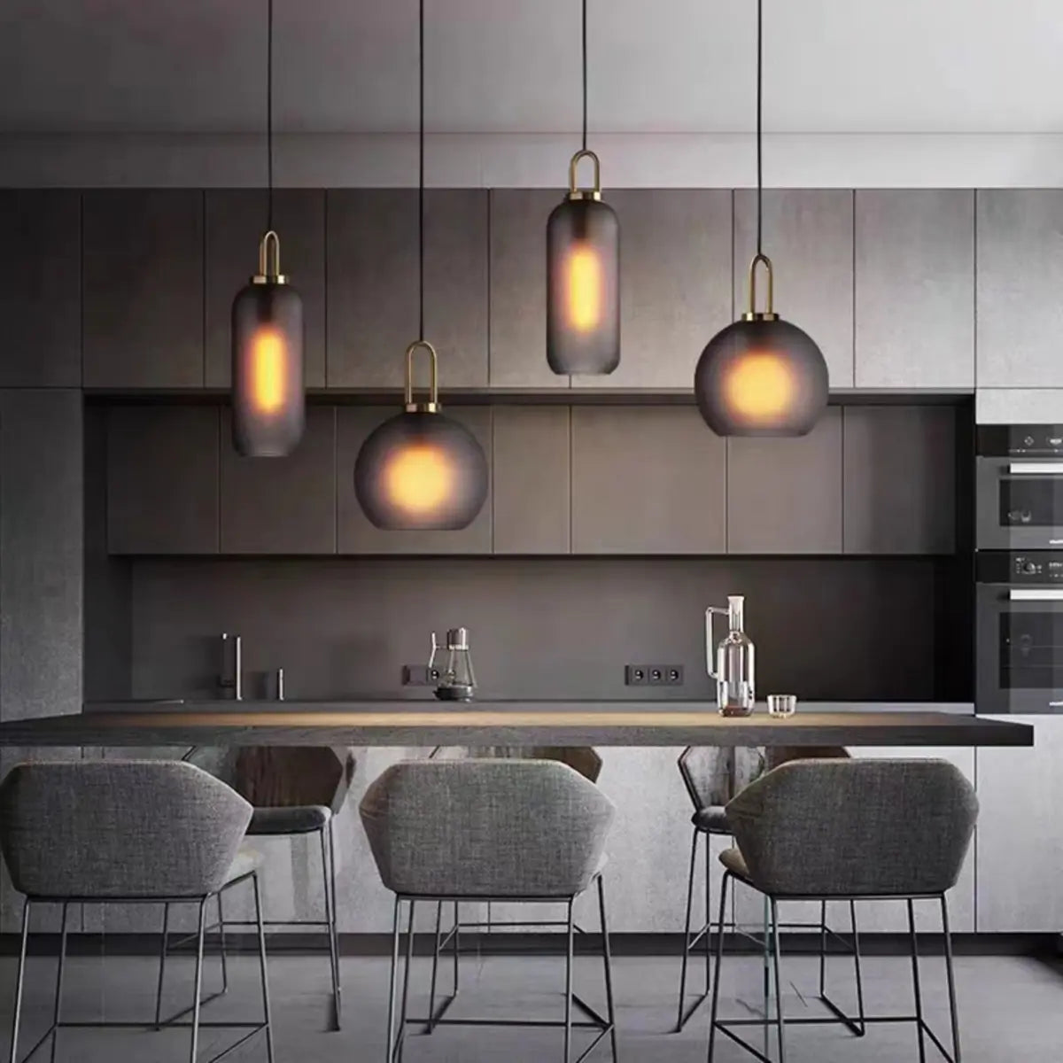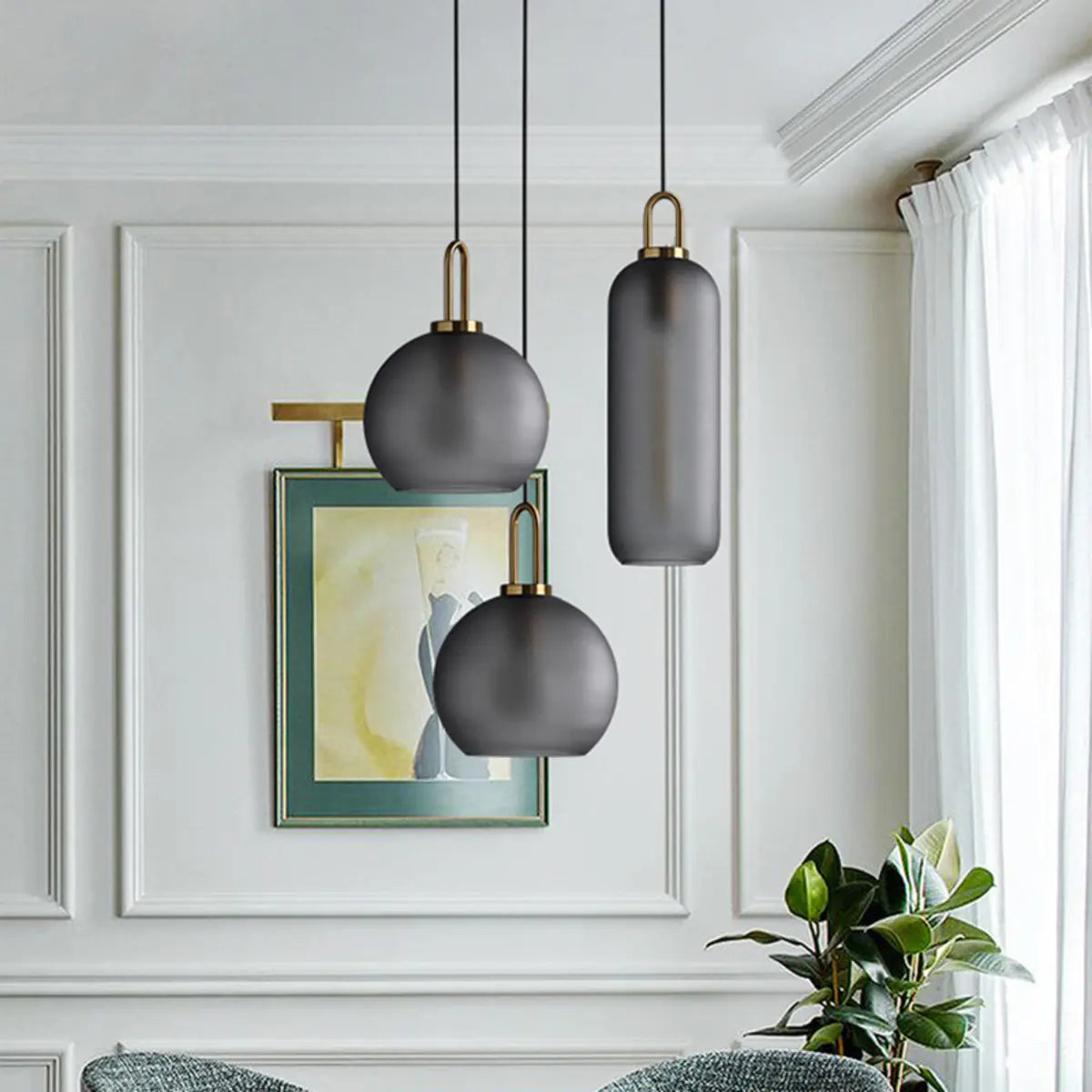 This chandelier features a simple and modern design, with a high-grade glass lampshade that combines minimalist cylindrical and spherical structures to present an elegant artistic beauty. The gray-toned lampshade emits a soft and warm glow under the refraction of light, adding a touch of fashion and taste to the home space.