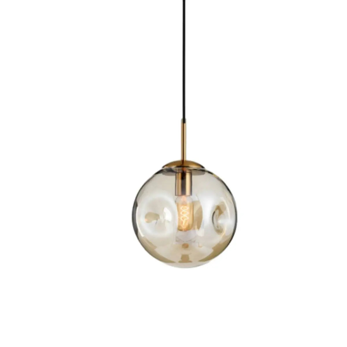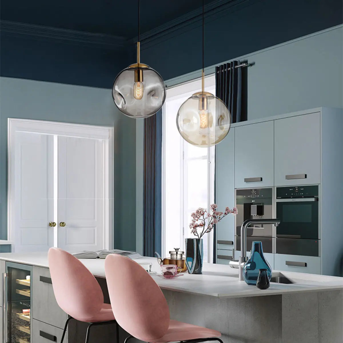 This pendant lamp features an elegant amber glass shade that creates a warm and soft lighting effect. The perfect combination of metal material and modern design not only highlights fashion but also adds a touch of exquisite beauty to the space. It can become an eye-catching focus in the kitchen or other spaces.