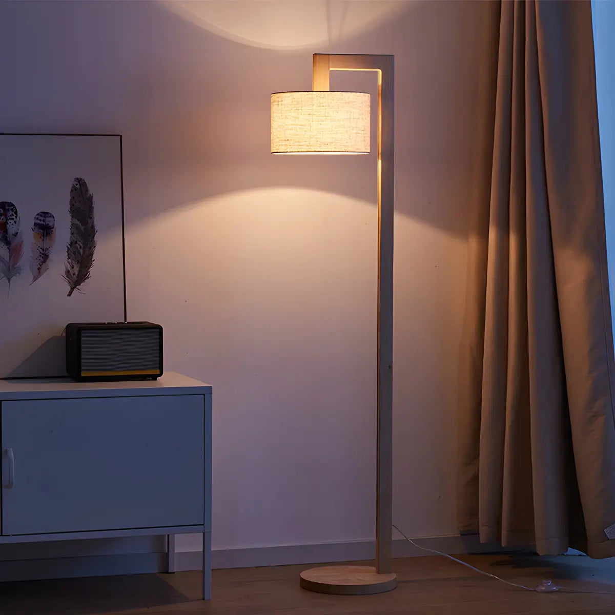 ZOWALA - Minimalist Natural Wooden Fabric Barrel Floor Lamp