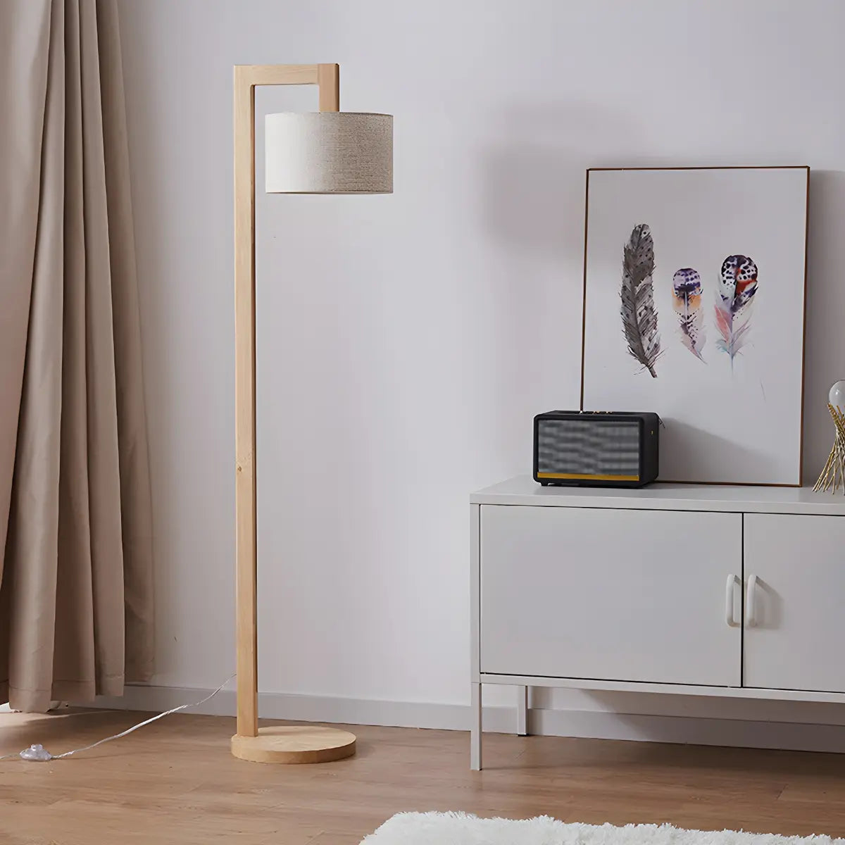 This minimalist wooden floor lamp is made of high-quality natural wood, combined with a modern design style, showing a simple and elegant beauty, suitable for a variety of modern home environments.