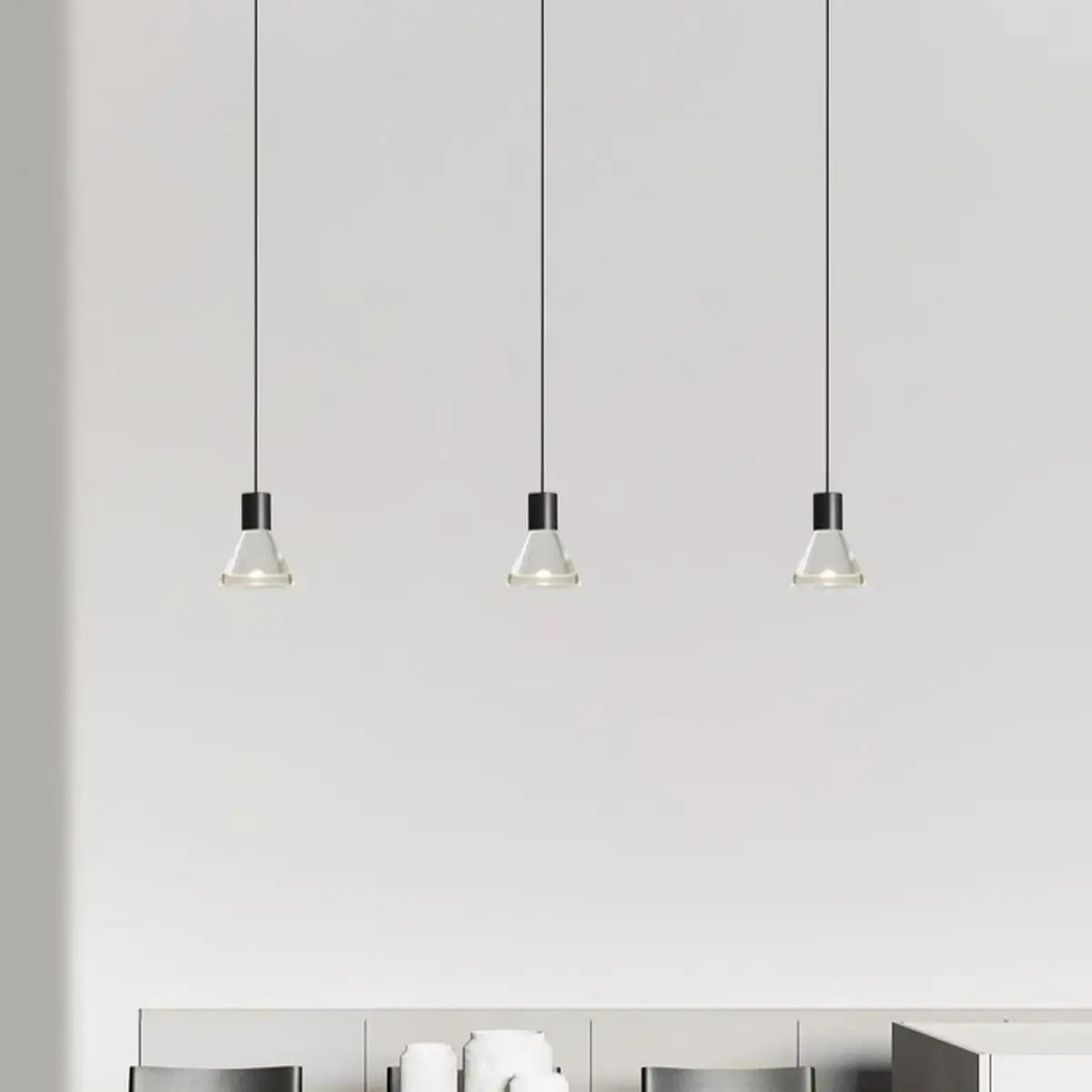 This pendant lamp has a simple and stylish black design with a high-quality acrylic lampshade, showing a modern aesthetic. The minimalist geometric shape makes it a unique landscape in the kitchen, adding a sense of layering and visual beauty to the space.