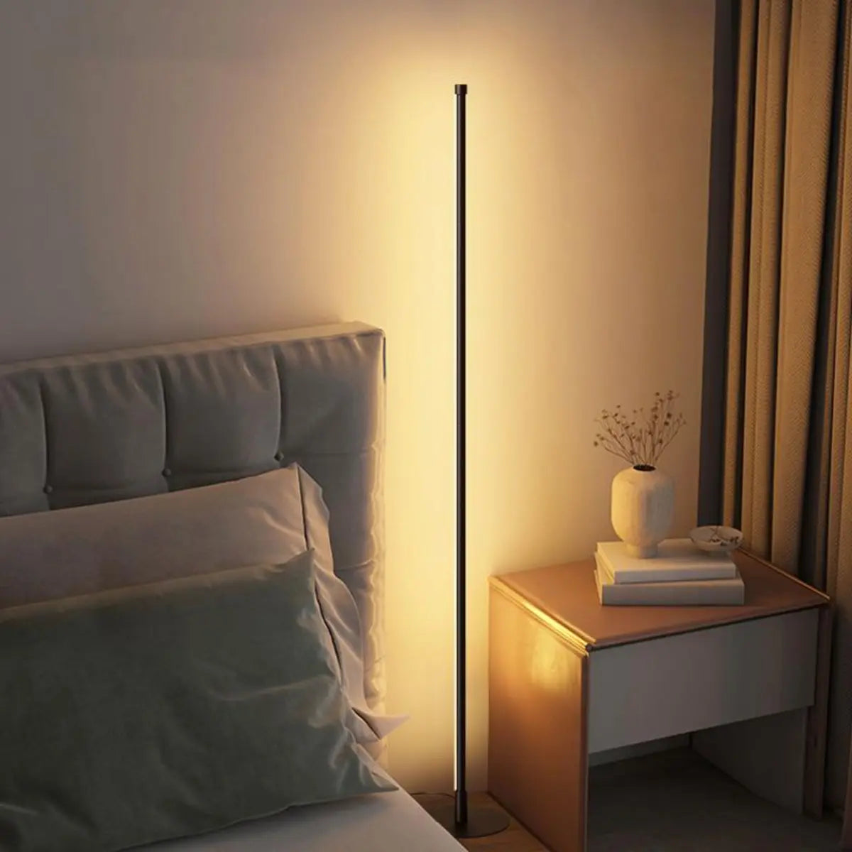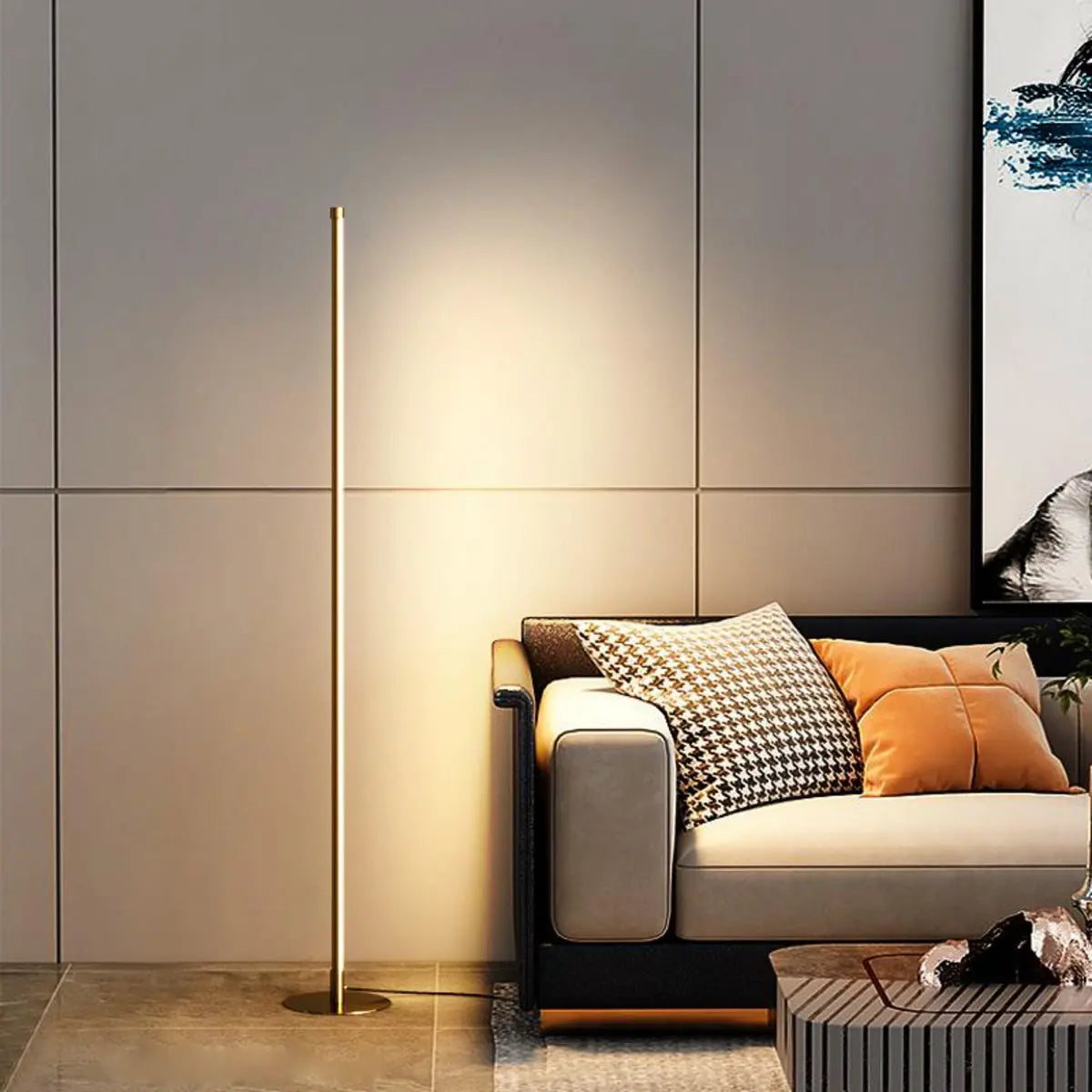 This modern minimalist style gold linear metal floor lamp perfectly combines elegance and practicality, becoming a stylish decoration for your home space. Its simple design is suitable for many decoration styles, especially modern and industrial styles.