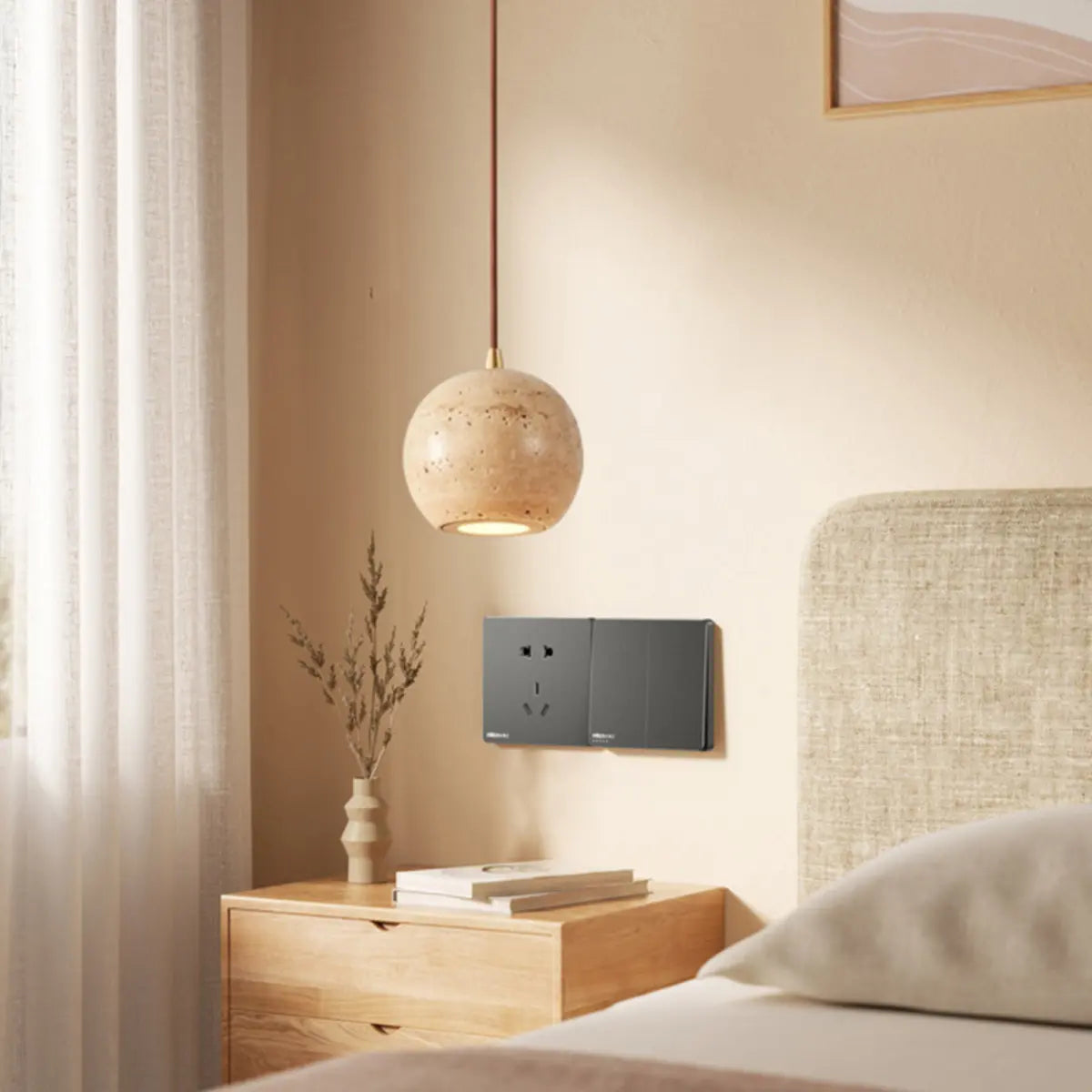 ZOWALA - Minimalist Beige Stone Globe Pendant Light