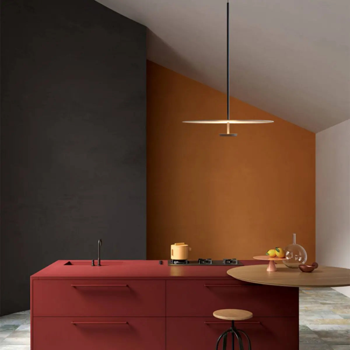 This pendant light is based on a modern and simple design. The black acrylic round lampshade looks like a suspended UFO, adding a futuristic and elegant touch to the space. Its exquisite appearance not only adds aesthetic value to the kitchen but also creates a warm and stylish atmosphere in the dining area.