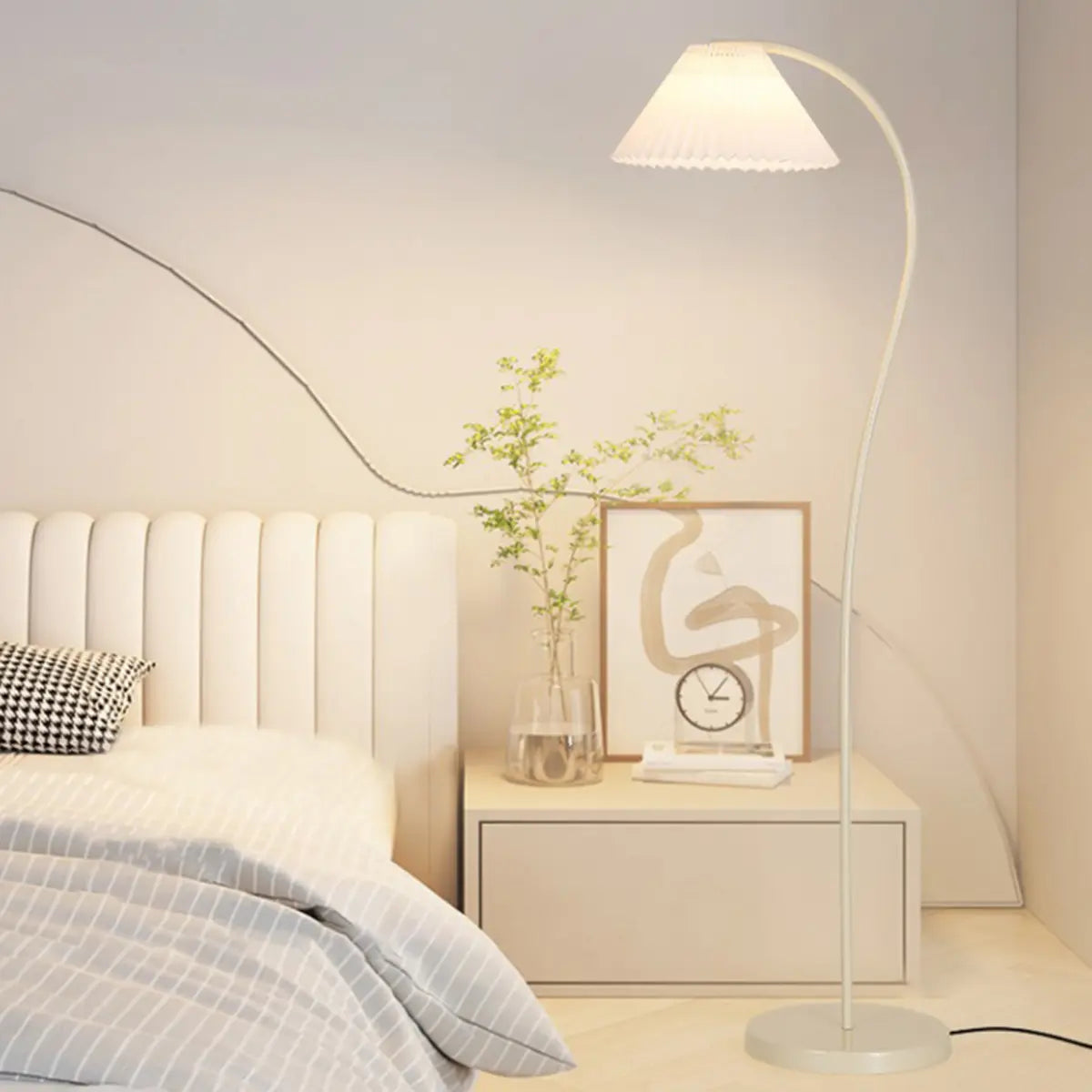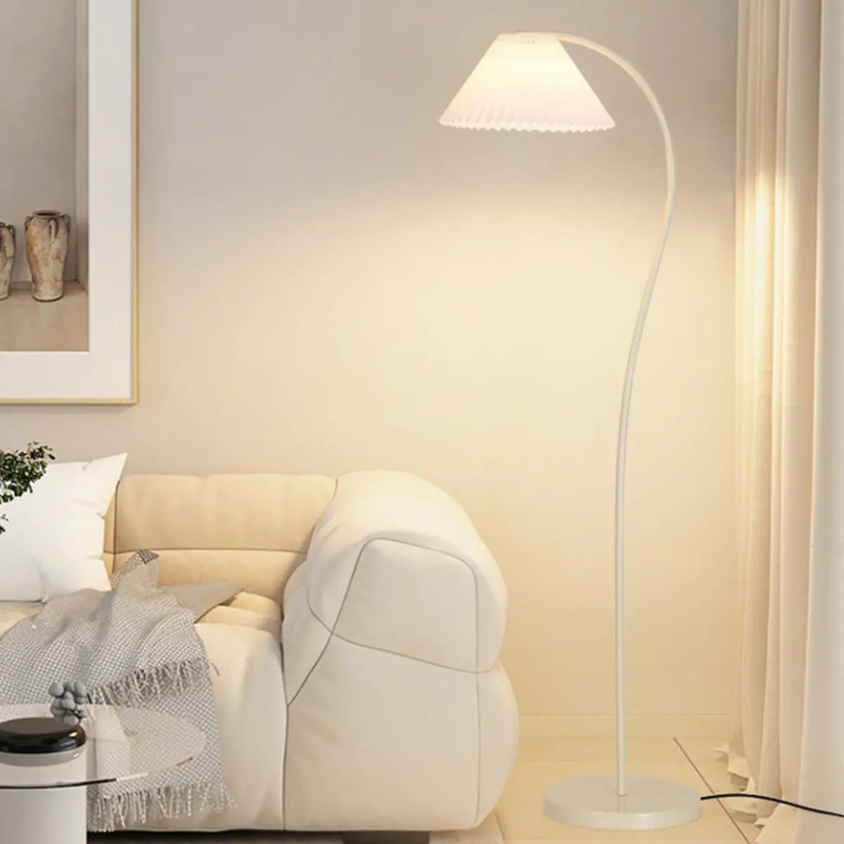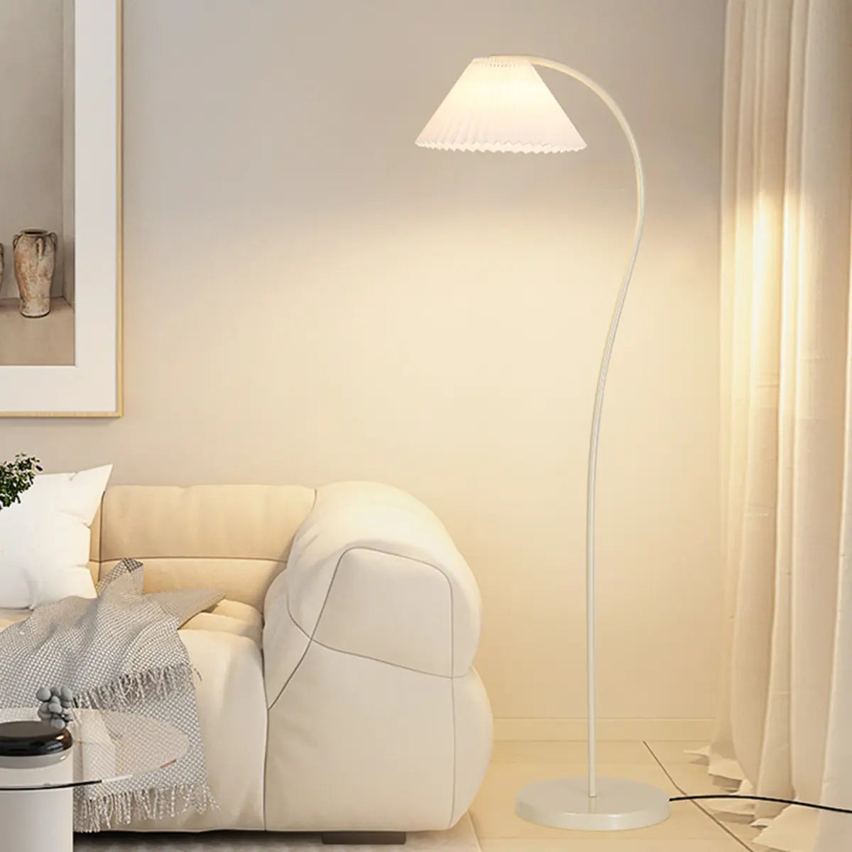 ZOWALA - Minimalist White Arc Pleated Cone Floor Lamp
