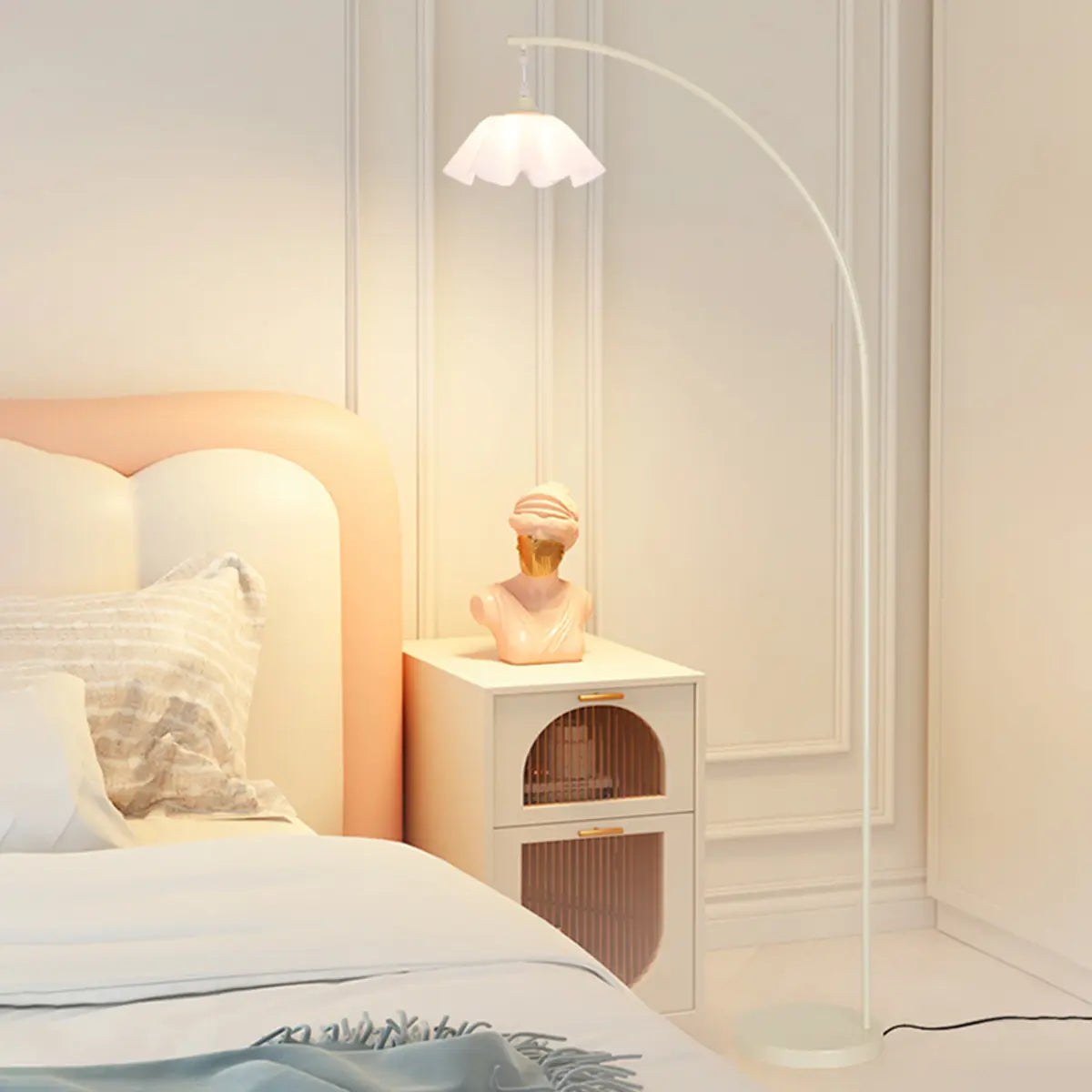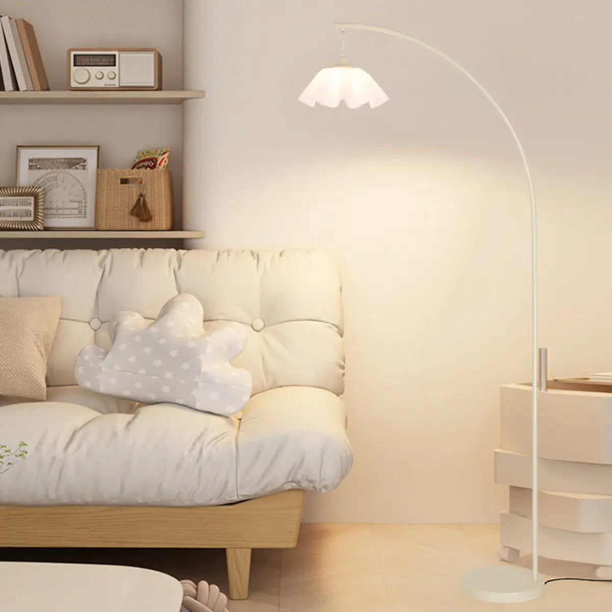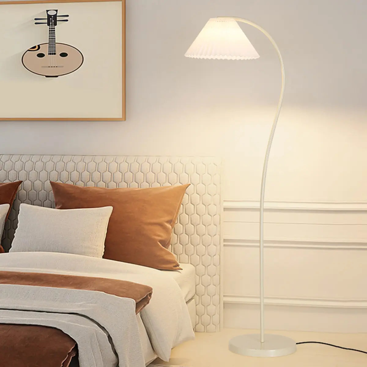 ZOWALA - Minimalist White Arc Pleated Cone Floor Lamp