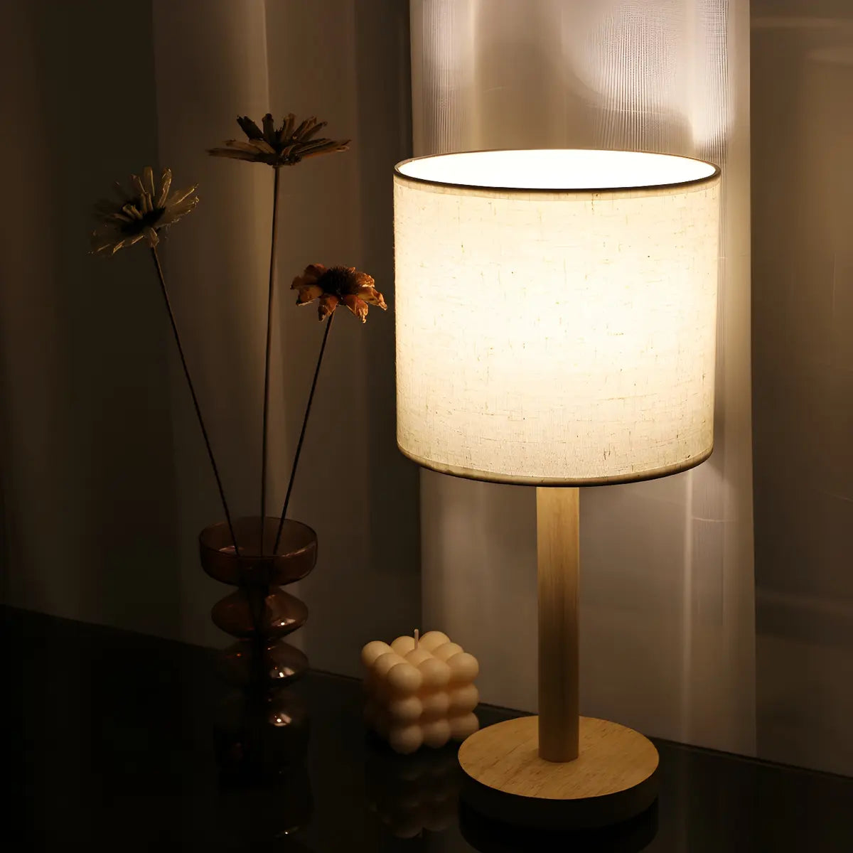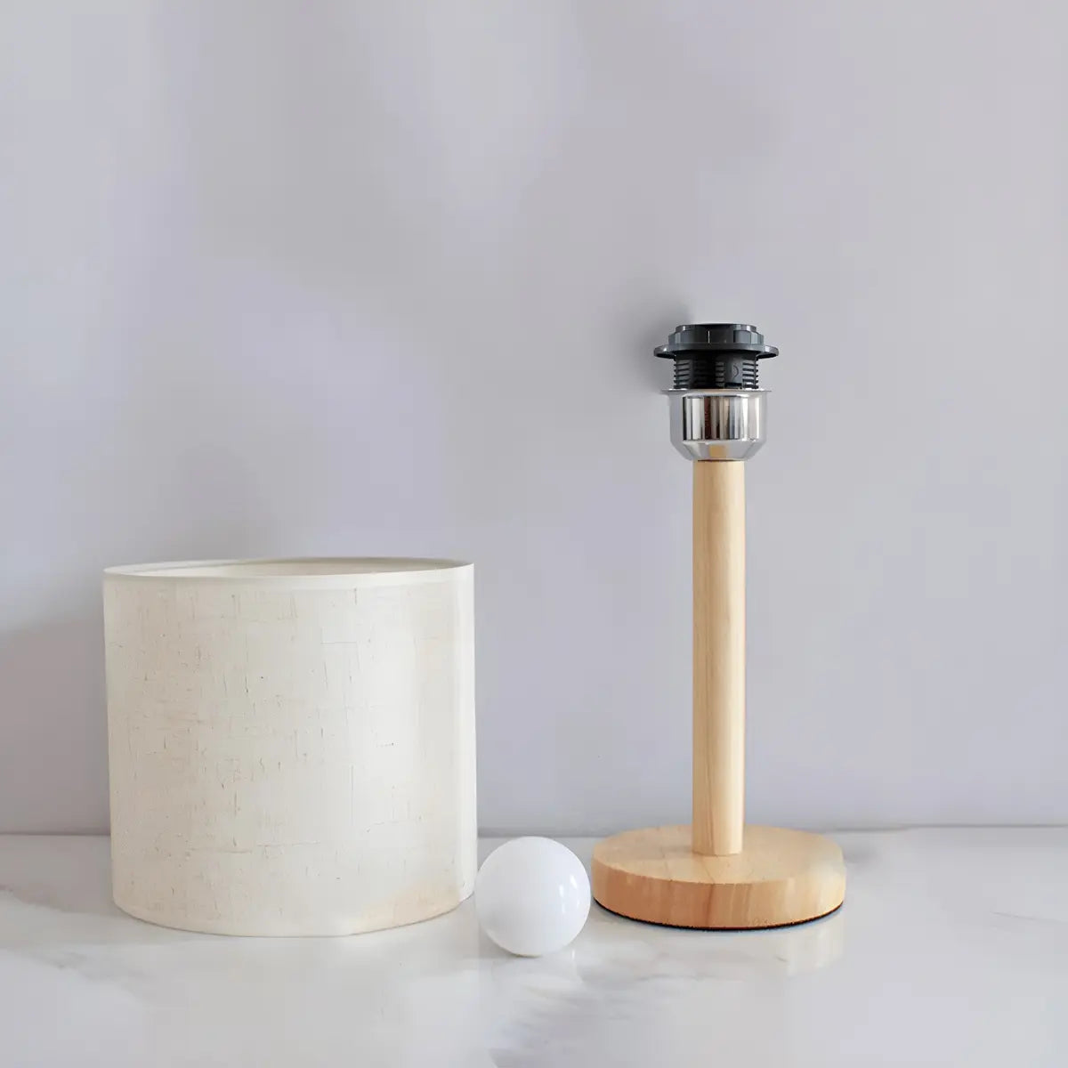 ZOWALA - Minimalist White Fabric Cylinder Wood Table Lamp