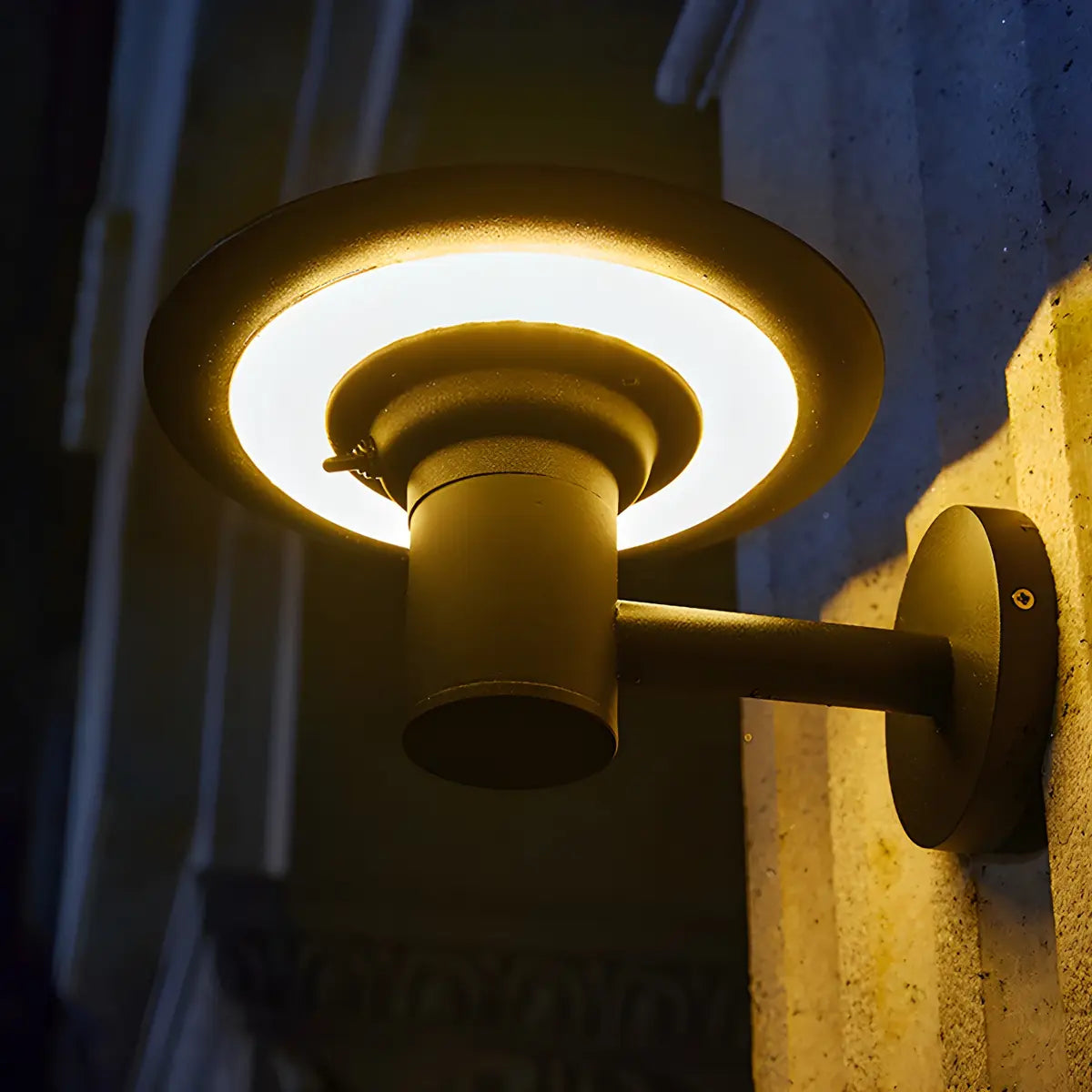 This wall lamp has a modern design style, is powered by solar energy, combines metal and acrylic materials, and is suitable for outdoor use.