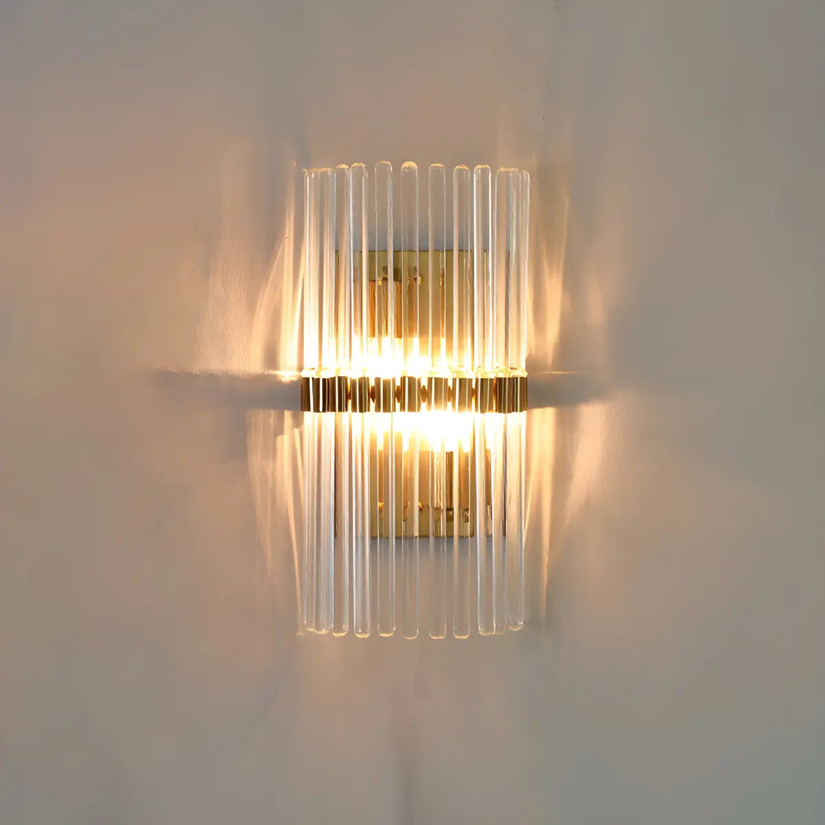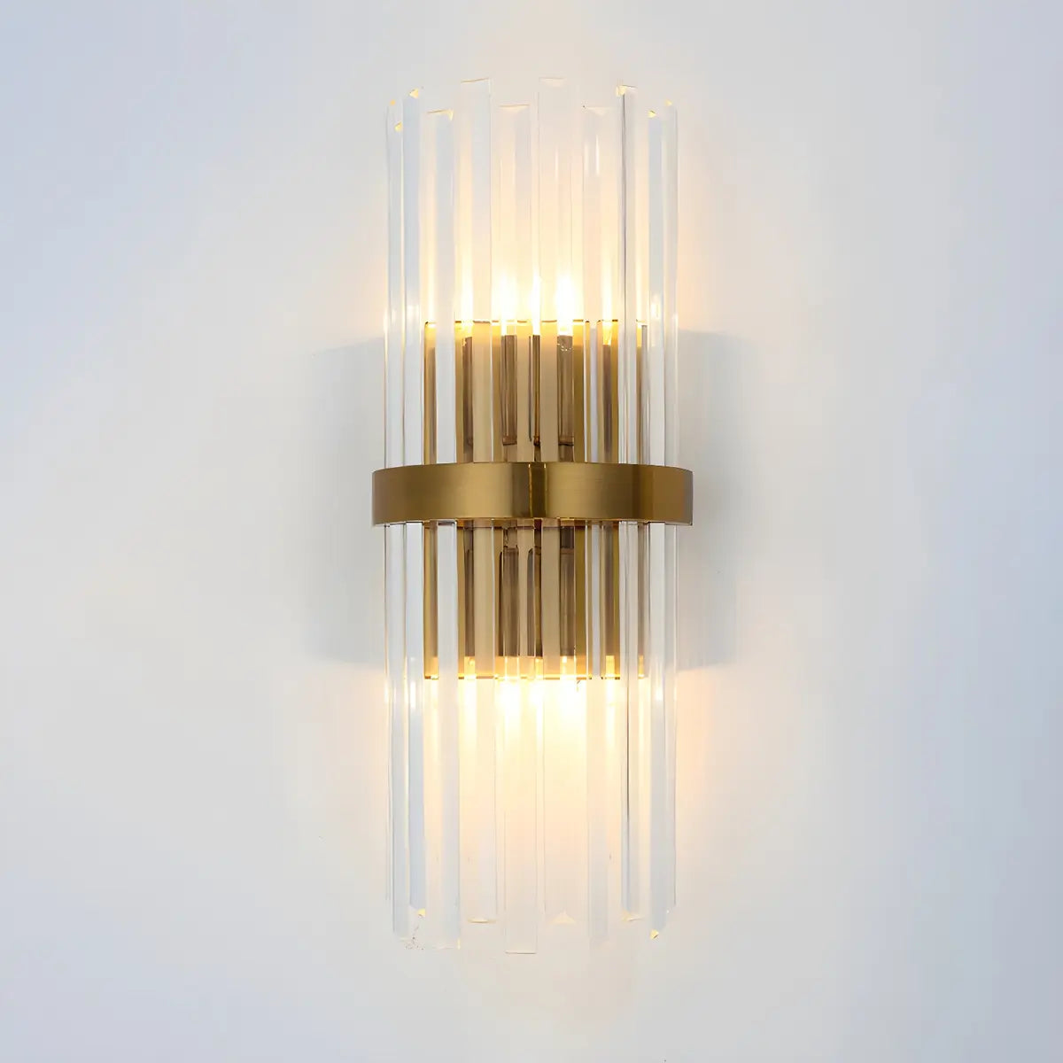 ZOWALA - Modern 2-Light Ribbed Crystal Gold Wall Light