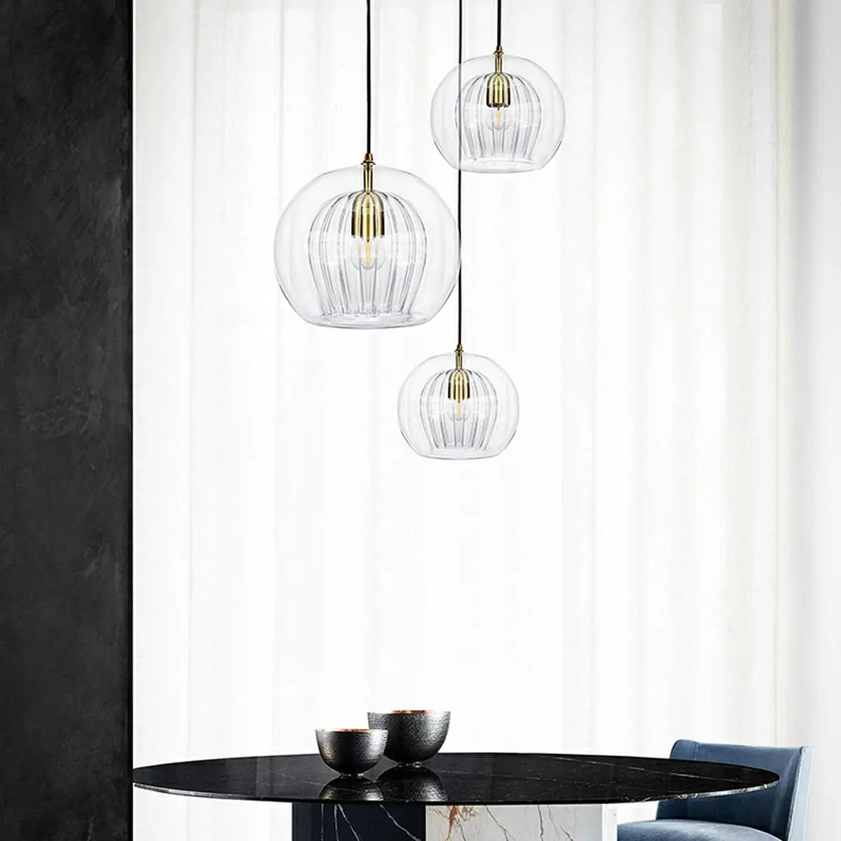 This chandelier adopts a glass ball-shaped lampshade with a simple and artistic outdoor look, and the golden metal elements add a classic industrial texture. Its transparent glass lampshade not only fully utilizes the light effect, but also brings a modern and elegant visual experience to your kitchen, which is an indispensable aesthetic focus in the space.