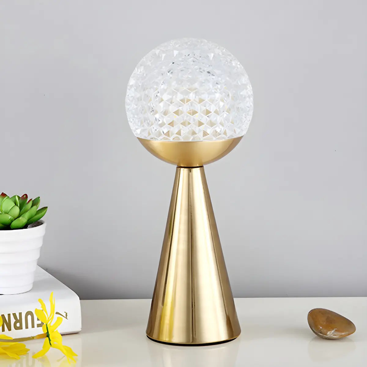 ZOWALA - Modern Acrylic Ball Metal Cone Gold Table Lamp