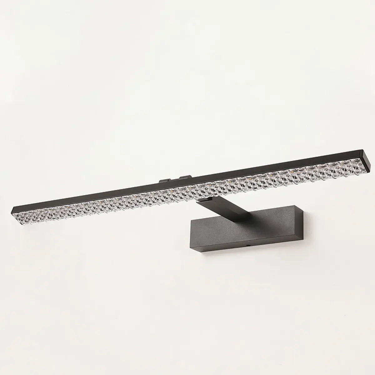 This modern minimalist bathroom mirror light features a metal base and acrylic shade for a stylish and elegant design.