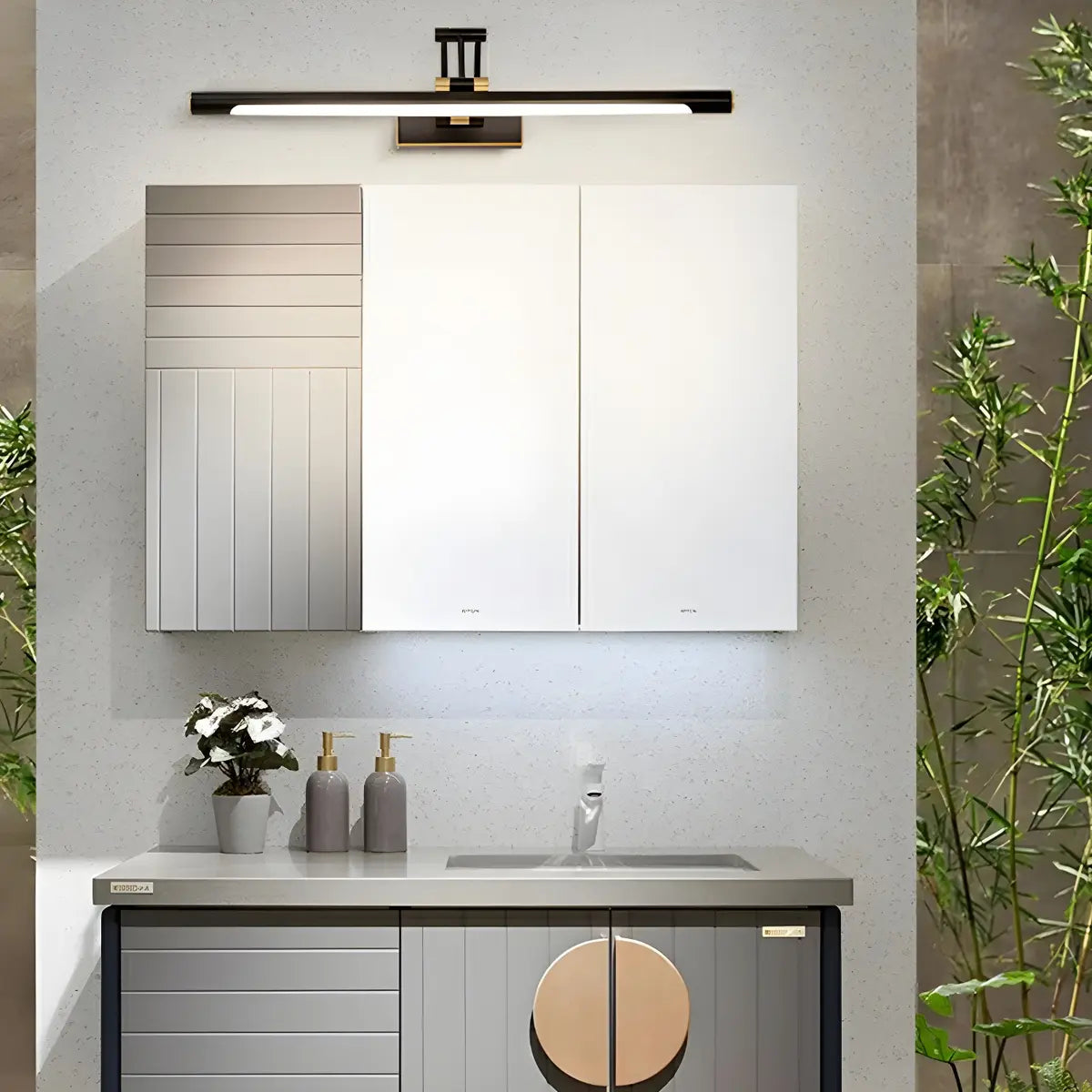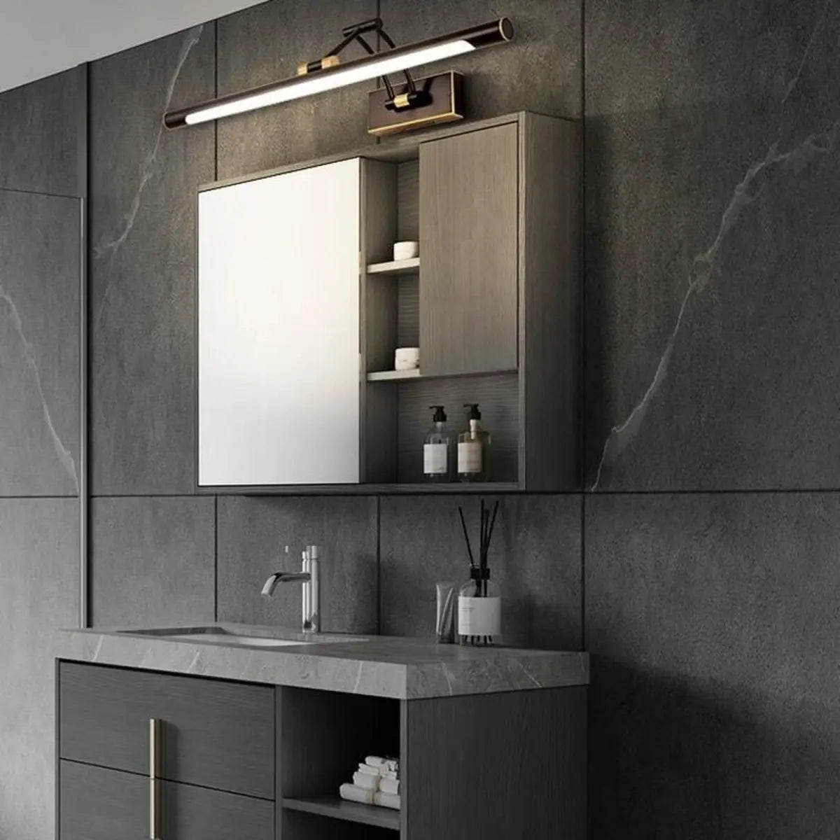This modern gold wall-mounted vanity lamp is both simple and practical, adding a touch of luxury to your bathroom or dressing room. Its streamlined design makes it perfect for any style. Apart from that, this lamp is built of sturdy metal, which makes it durable and rust-proof, maintaining long-term use.