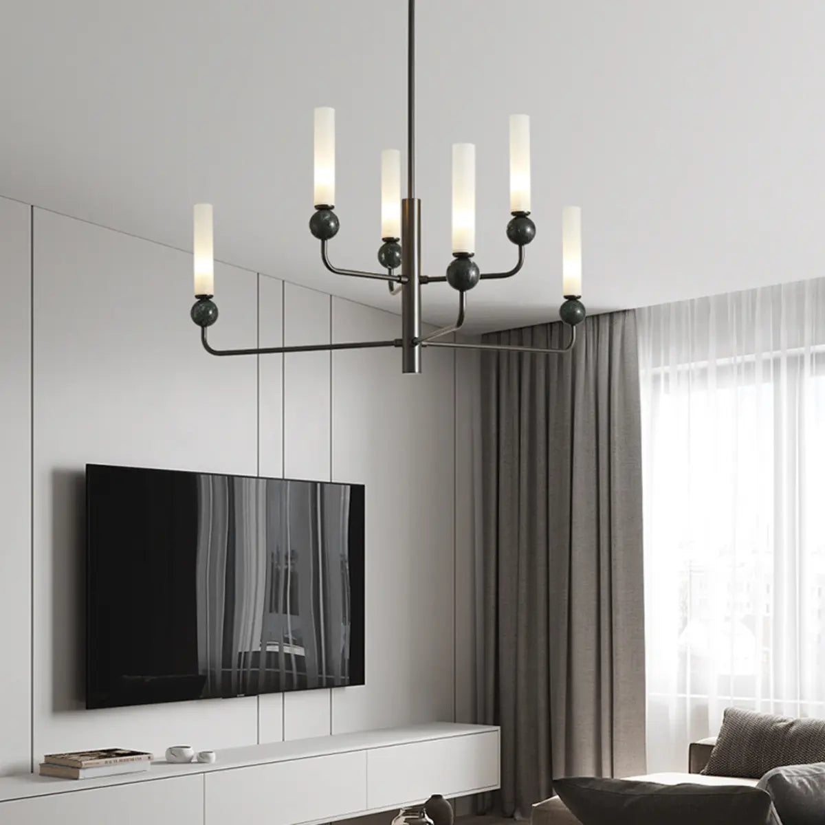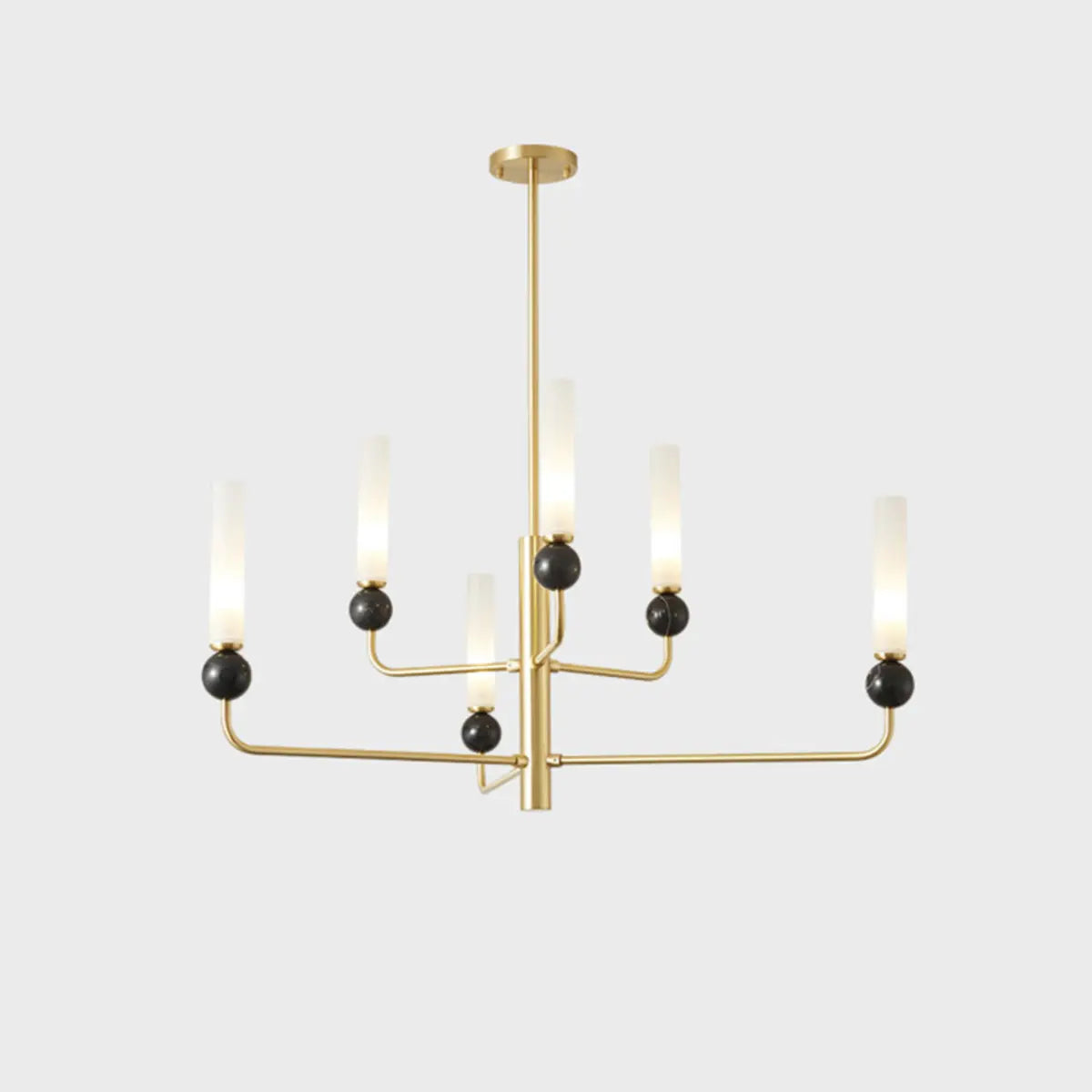 This modern geometric brass chandelier perfectly blends functionality and aesthetics, making it an ideal choice to elevate your interior decor. Its unique design adds a contemporary touch to any living space.