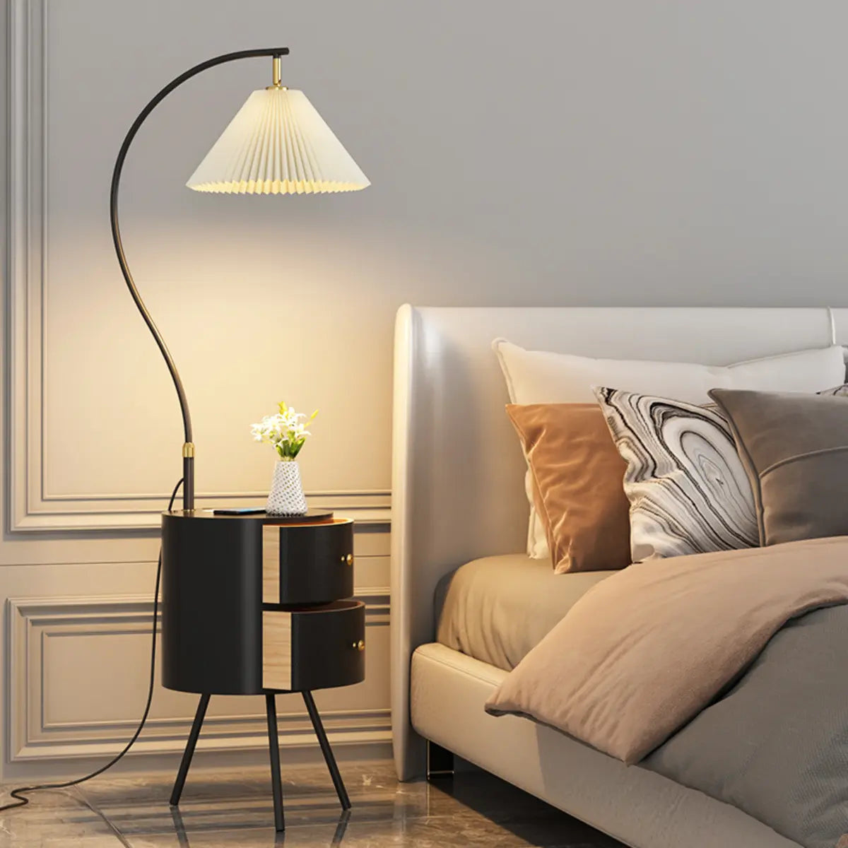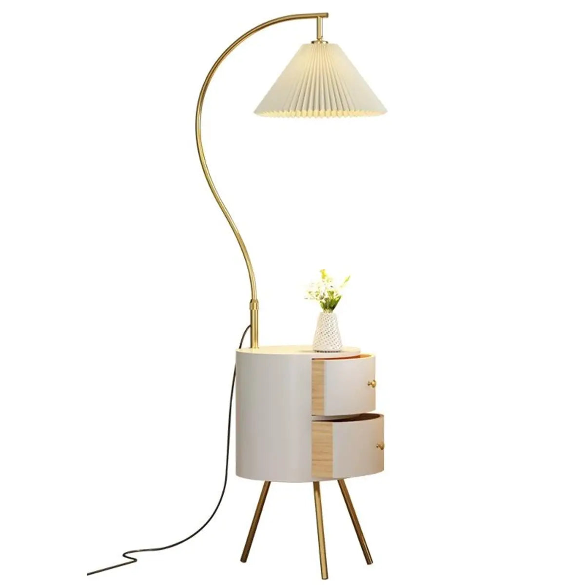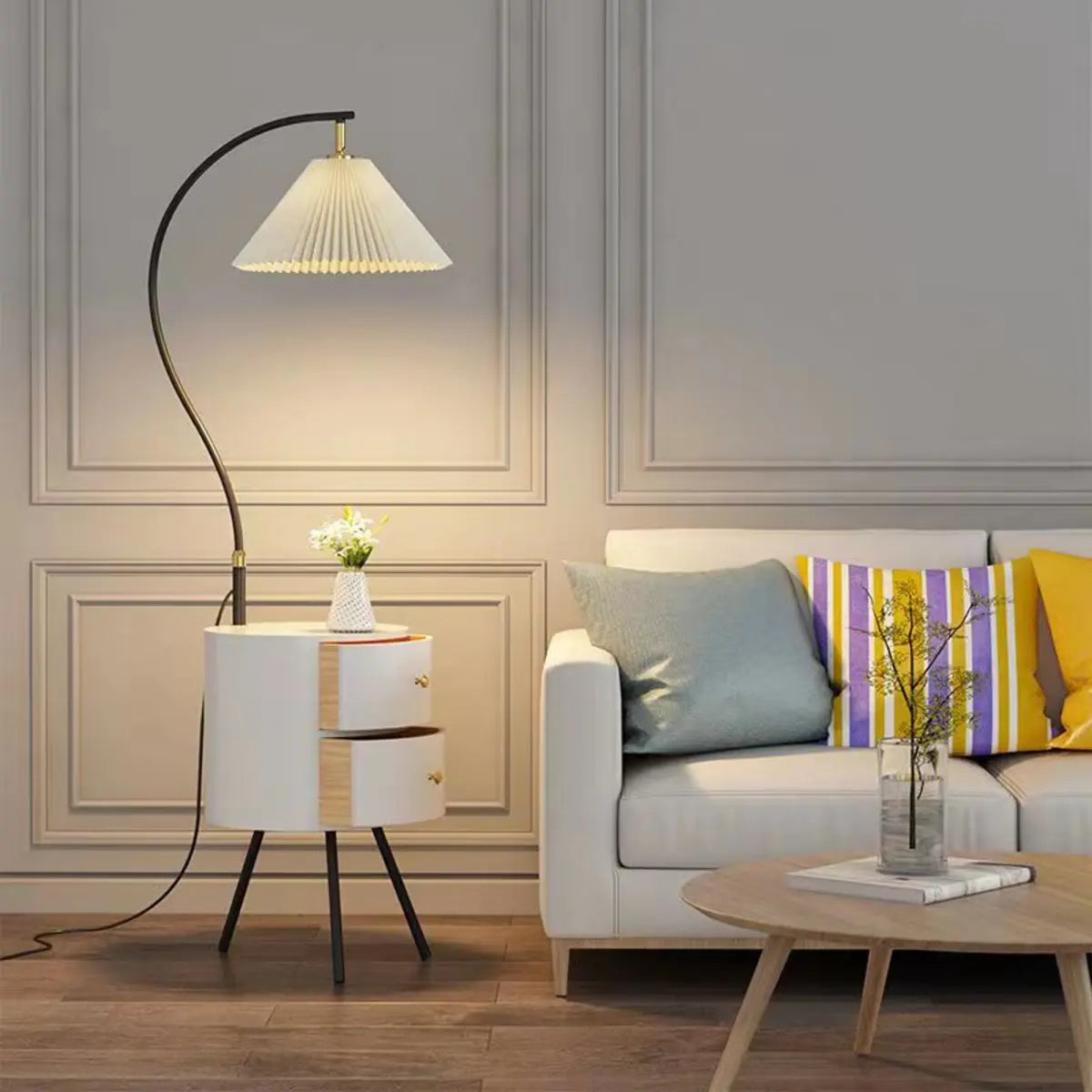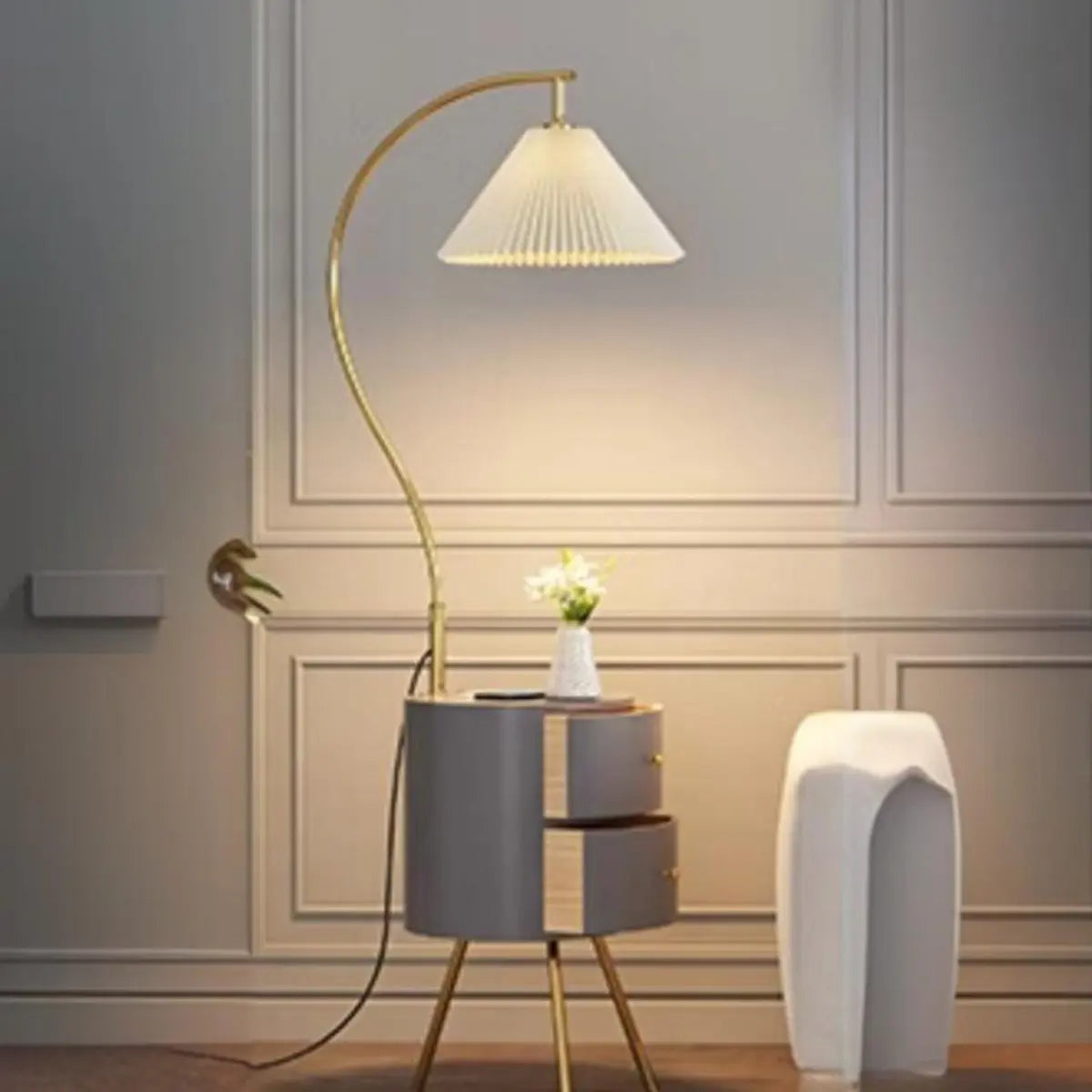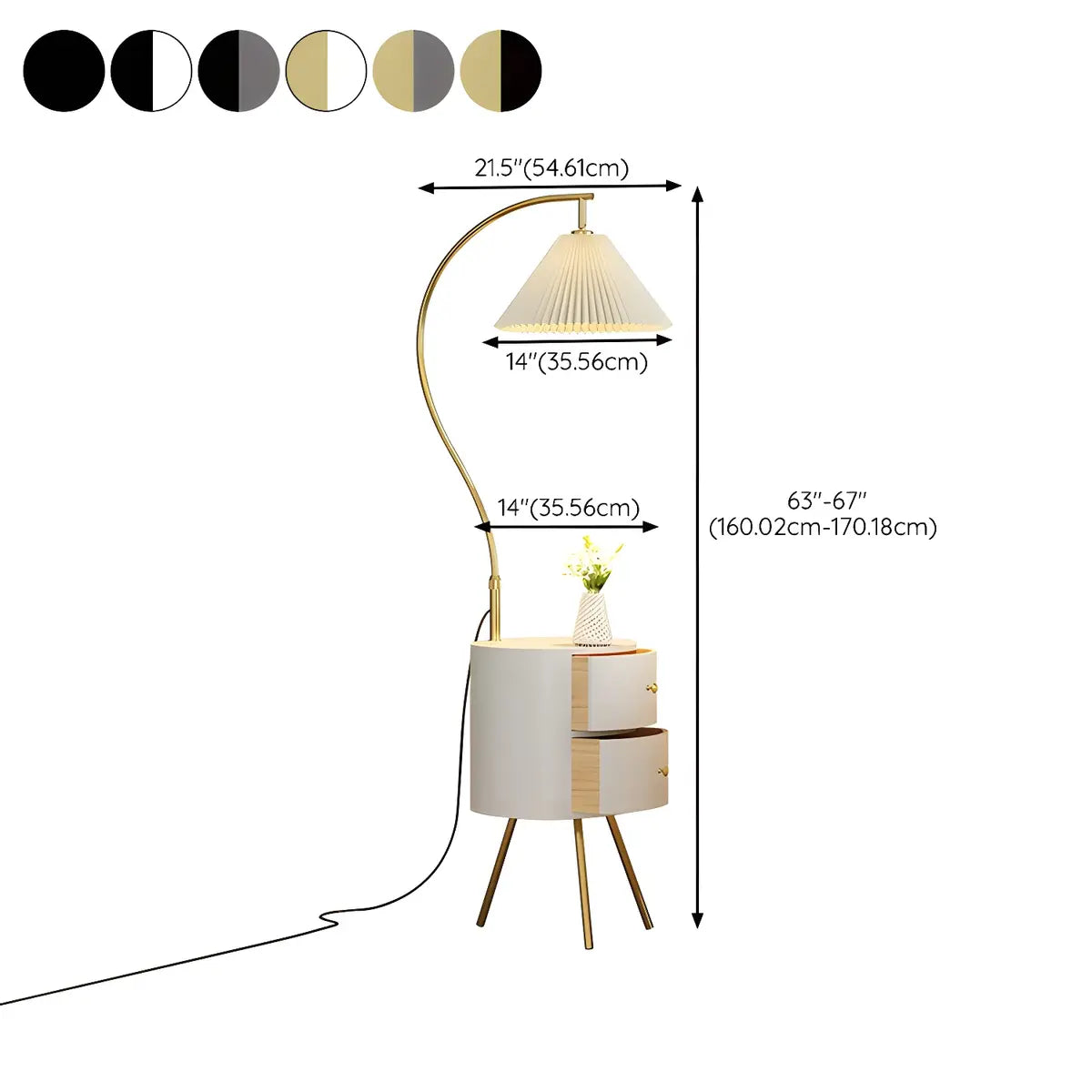 ZOWALA - Modern Gold Arc Pleated Floor Lamp with Storage
