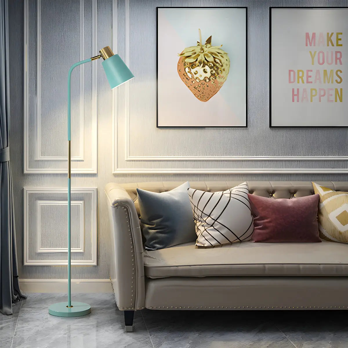 This minimalist green cone floor lamp combines modern design with practical functionality to add a touch of stylish light to your home.
