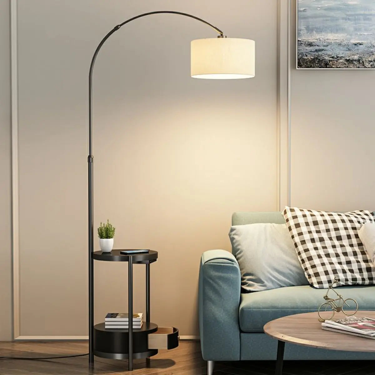 ZOWALA - Modern Barrel Gold Arched Floor Lamp with Table
