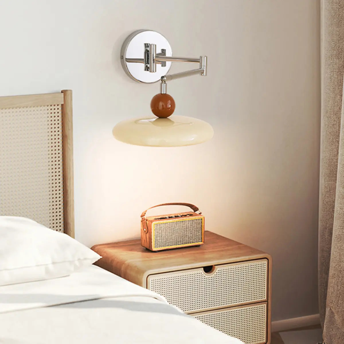 ZOWALA - Modern Beige Disc Silver Swing Arm Wall Sconce