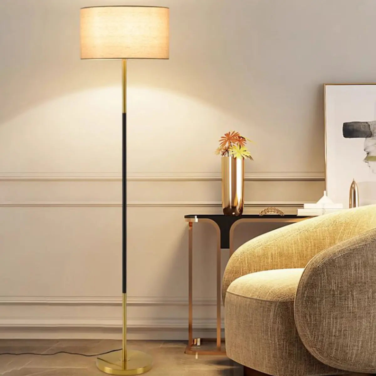 ZOWALA - Modern Beige Drum Black Column Floor Lamp