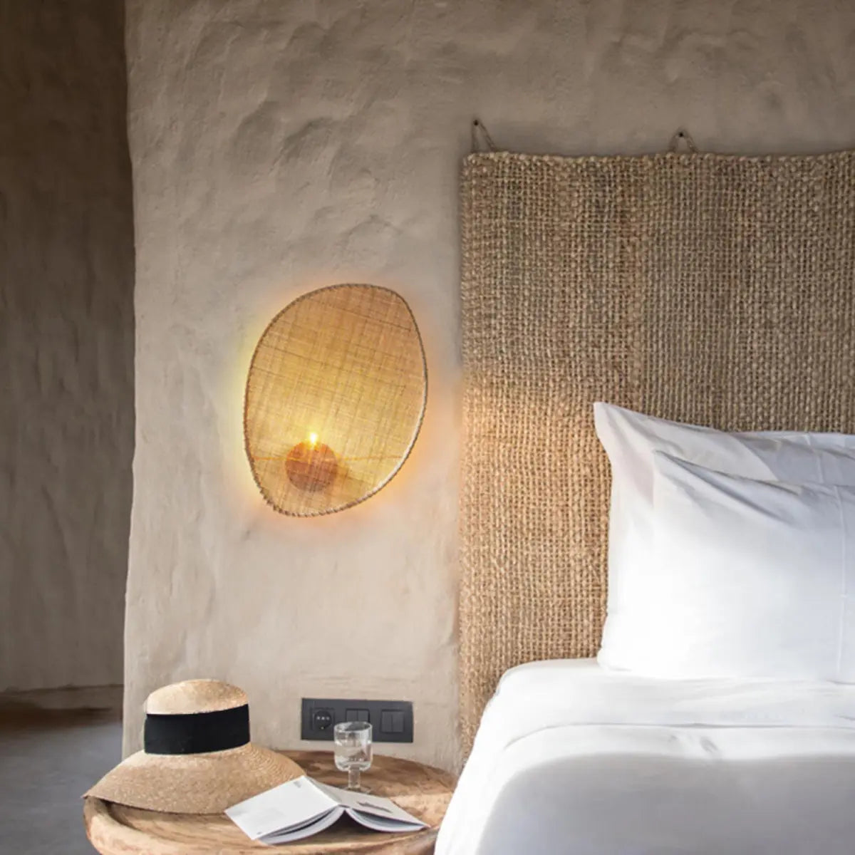 ZOWALA - Modern Beige Oval Rattan Wall Sconce