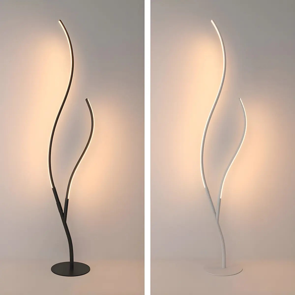 ZOWALA - Modern Black 2-Light Curved LED Floor Lamp