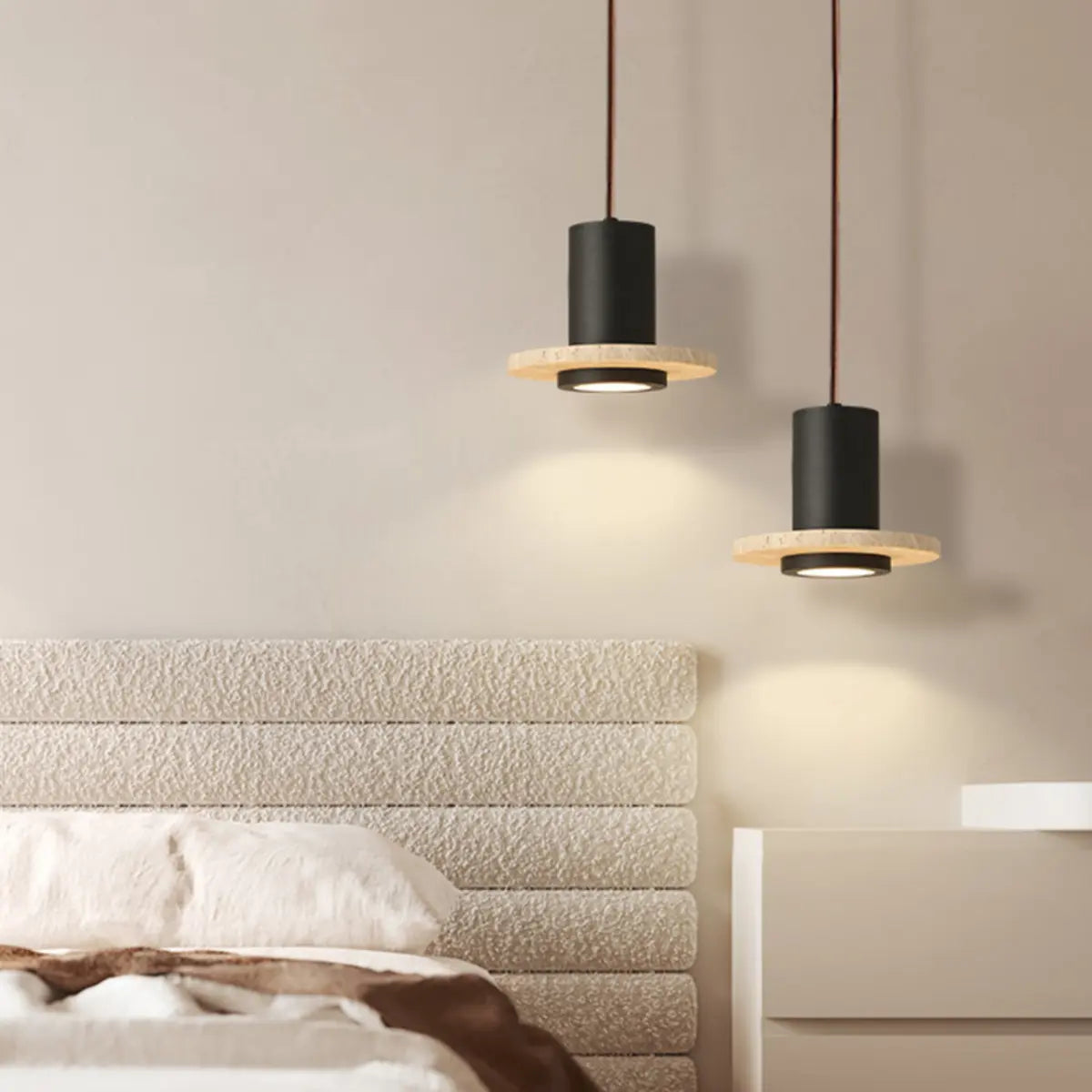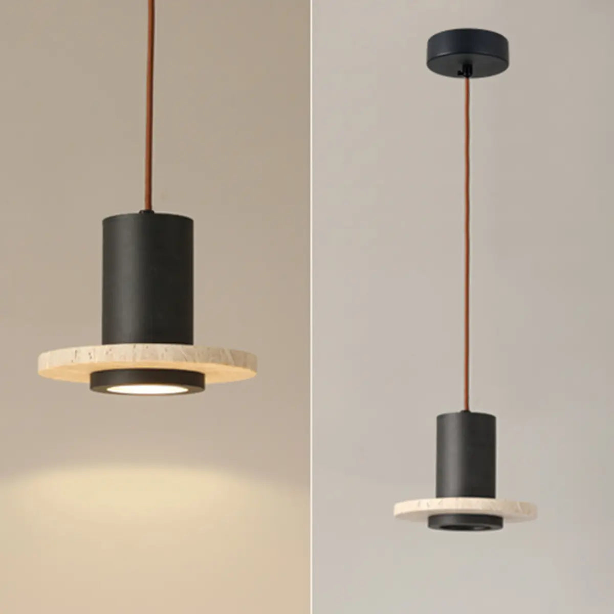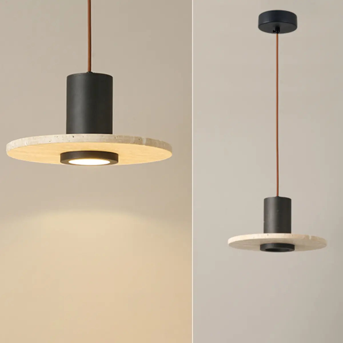 ZOWALA - Modern Black Aluminum Stone Round Pendant Light