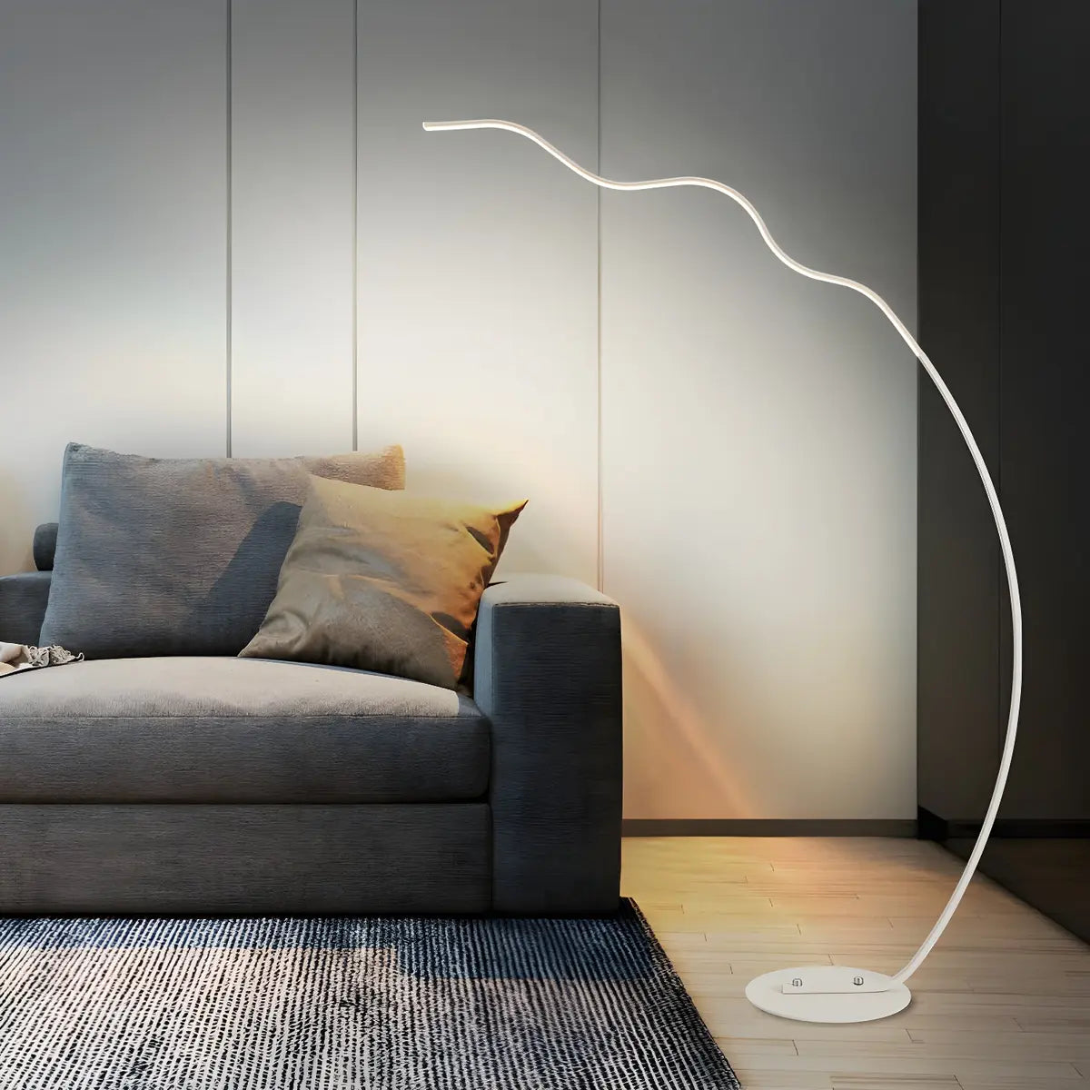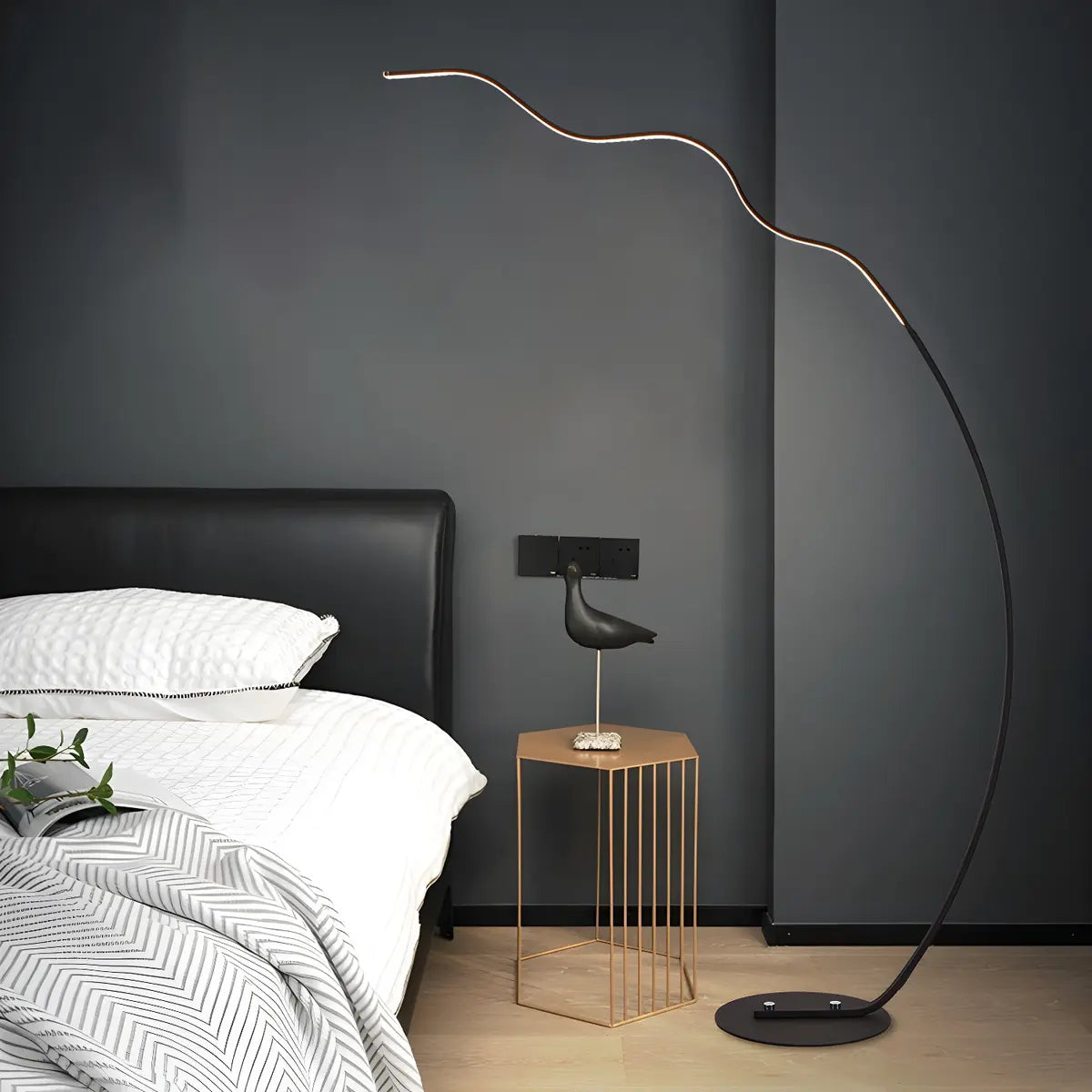 This modern curved metal LED floor lamp not only has an excellent decorative effect, but also provides a comfortable lighting experience, perfectly integrated into the modern minimalist style of the bedroom or living room.