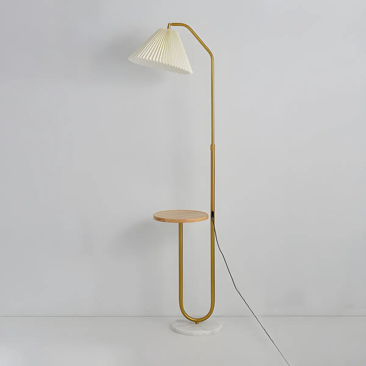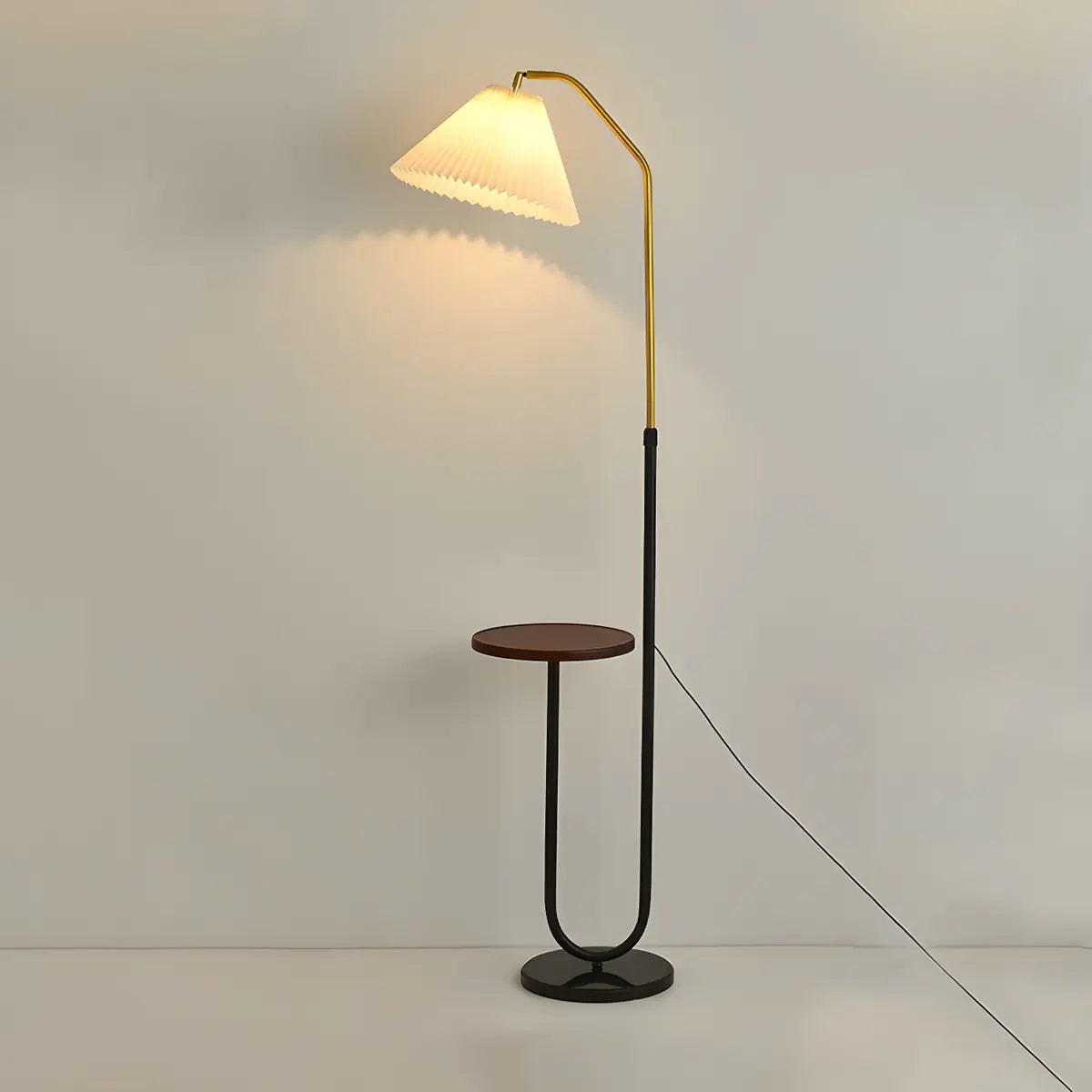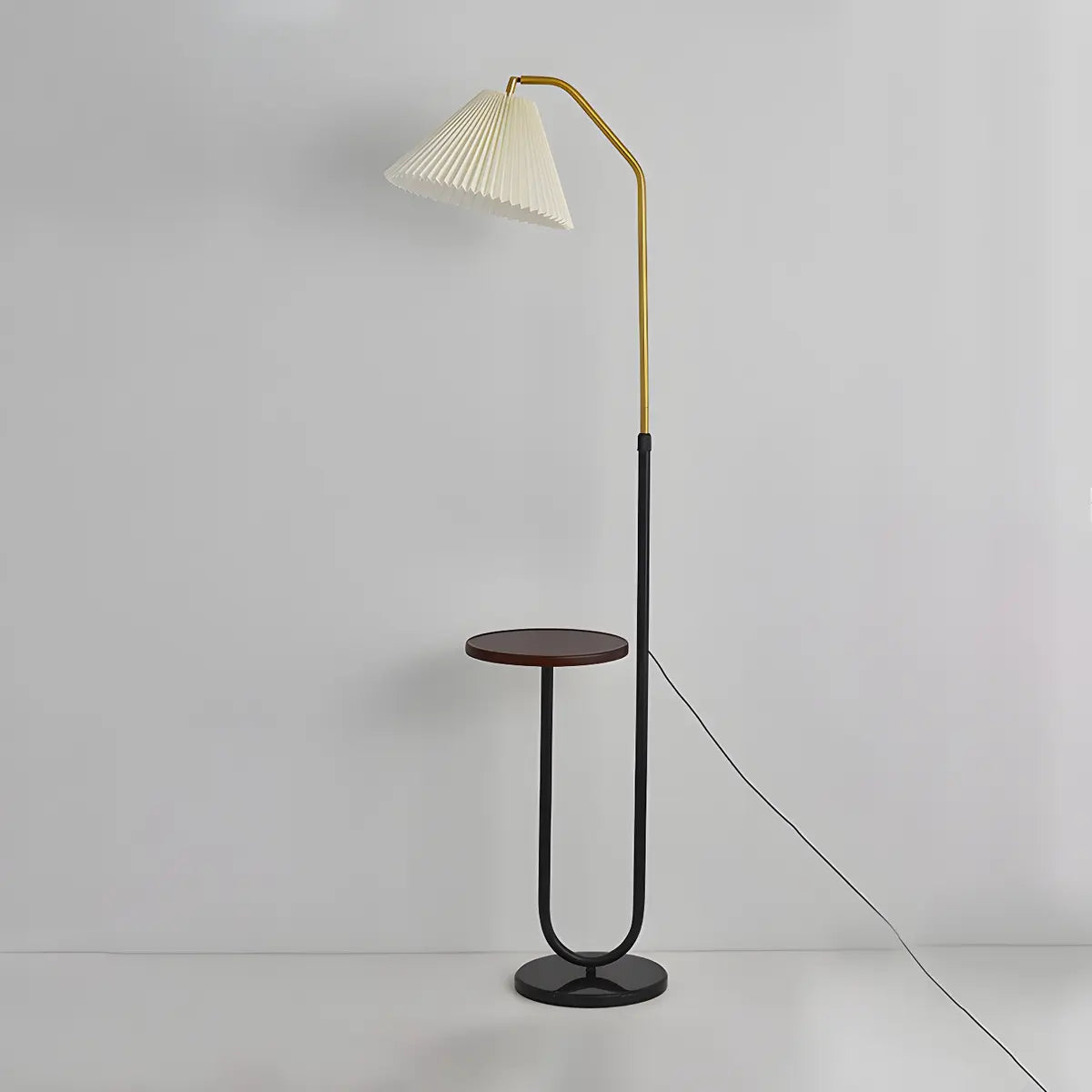 ZOWALA - Modern Black Gold Fabric Floor Lamp with Table