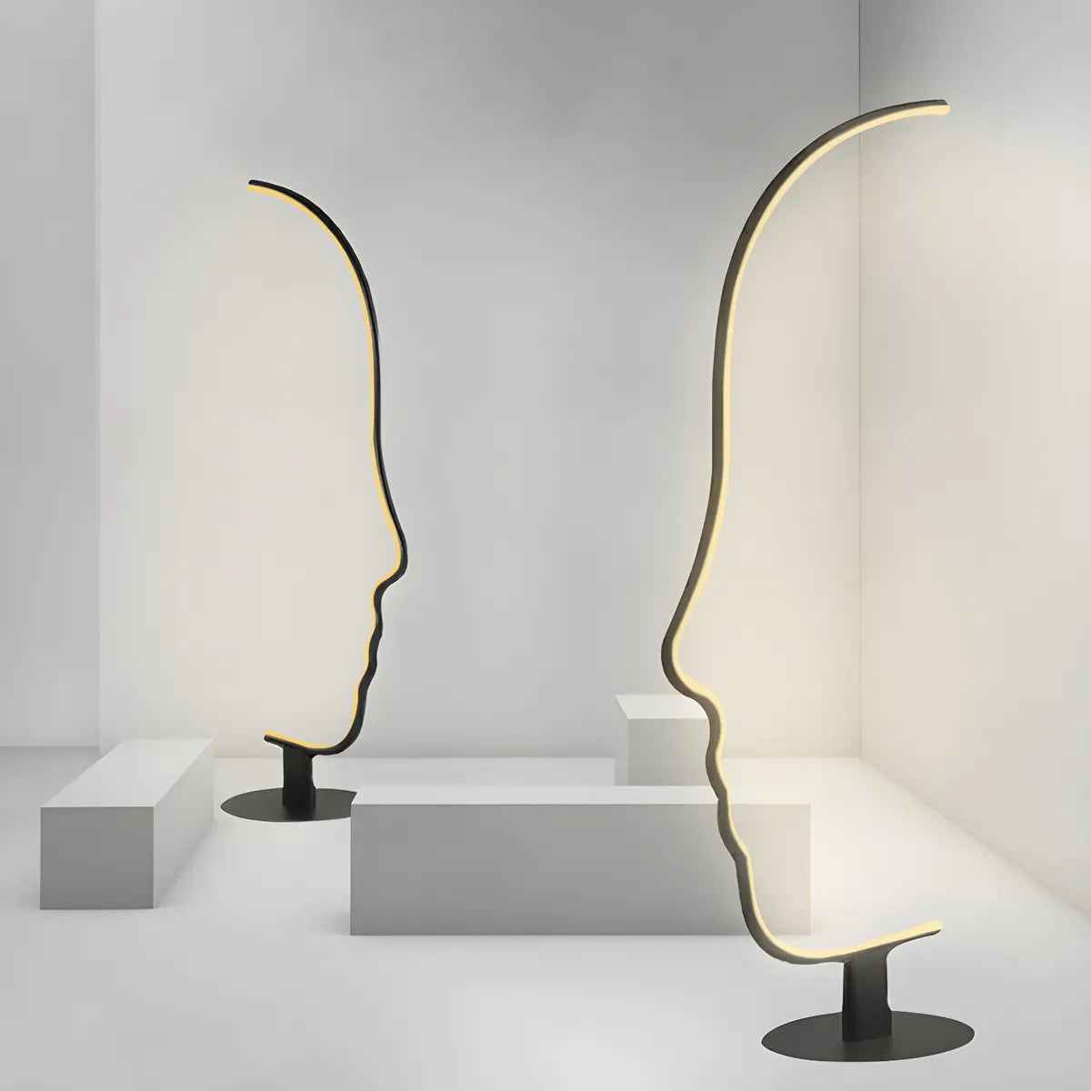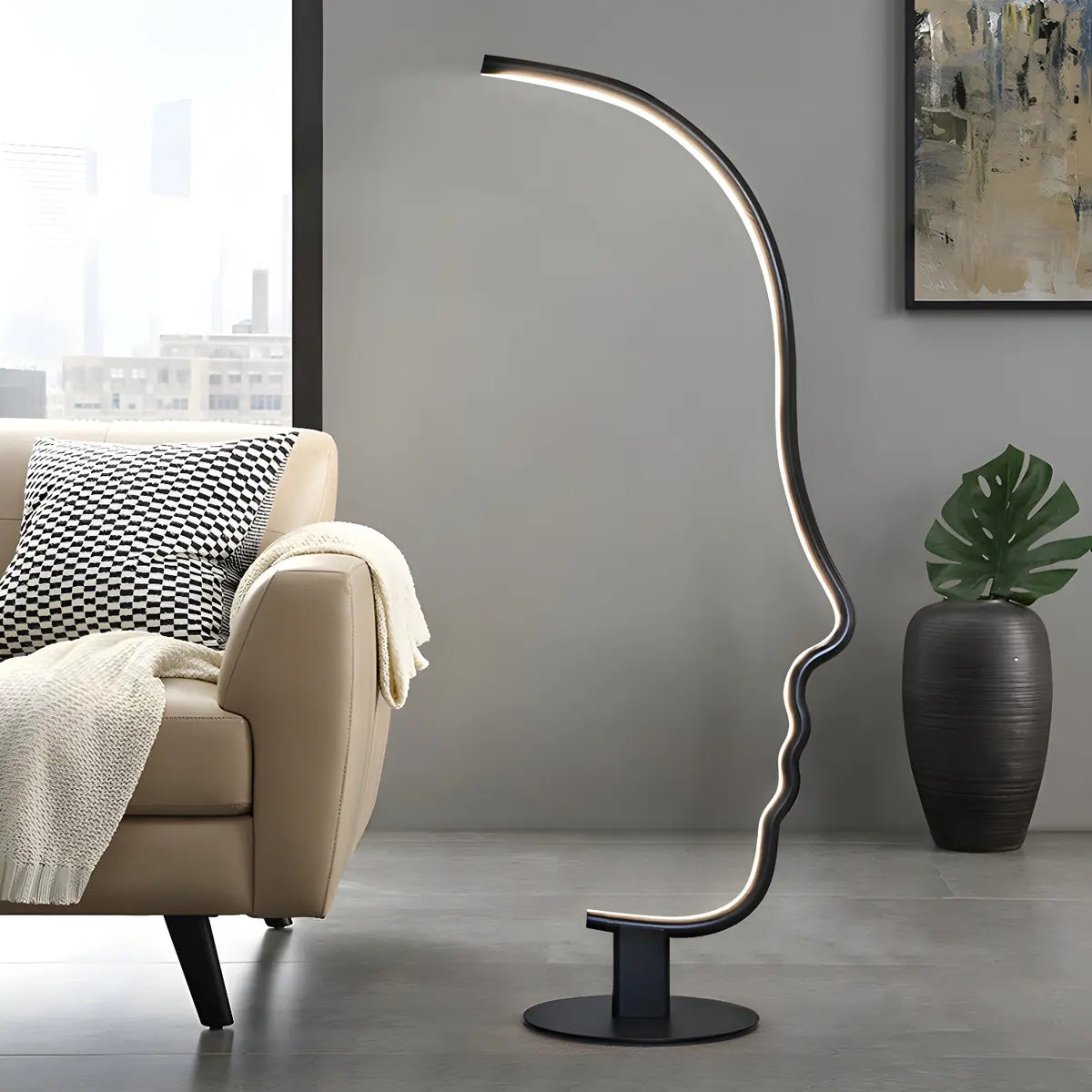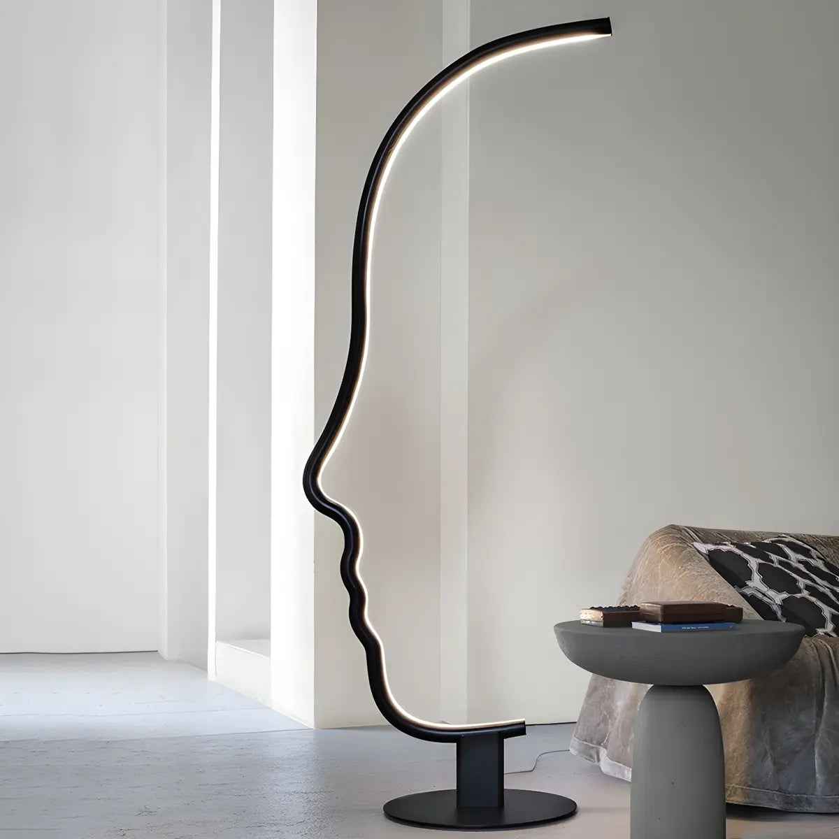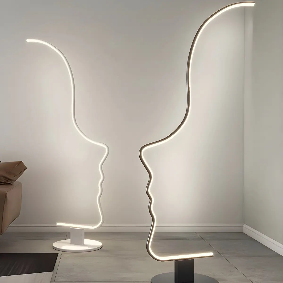 This modern style metal floor lamp has a unique abstract facial design, which not only provides lighting, but also adds an artistic touch, which is very suitable for living room decoration. Its exquisite appearance design makes it the focus of the space, perfectly integrating the modern home style.