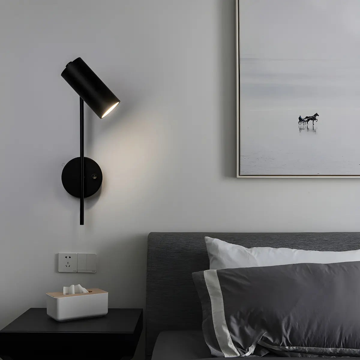 This modern wall lamp is the perfect blend of contemporary style and functionality with its unique cylindrical design and metal material.