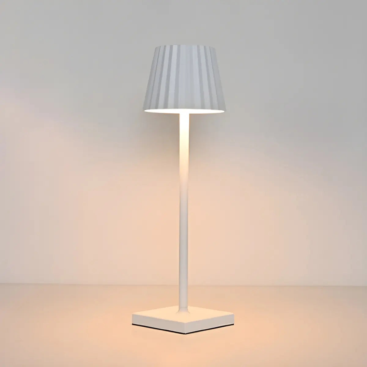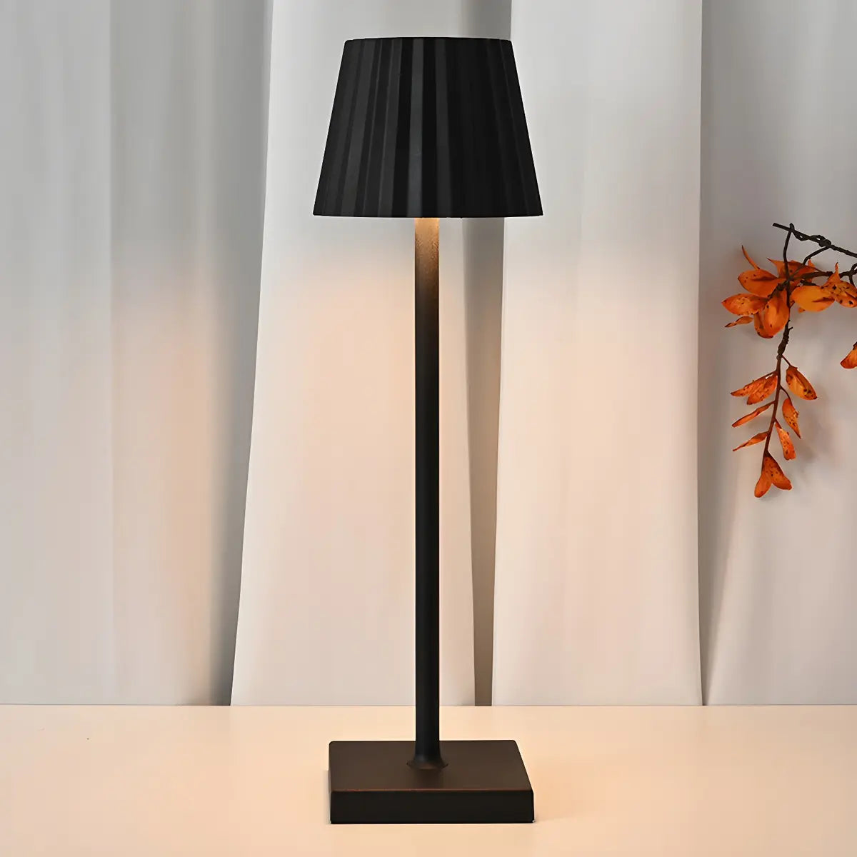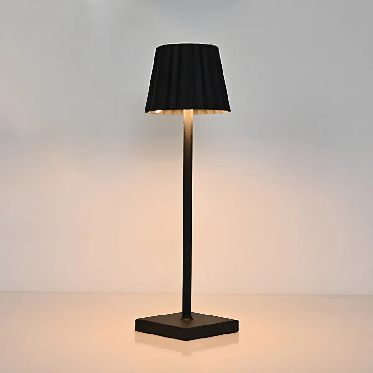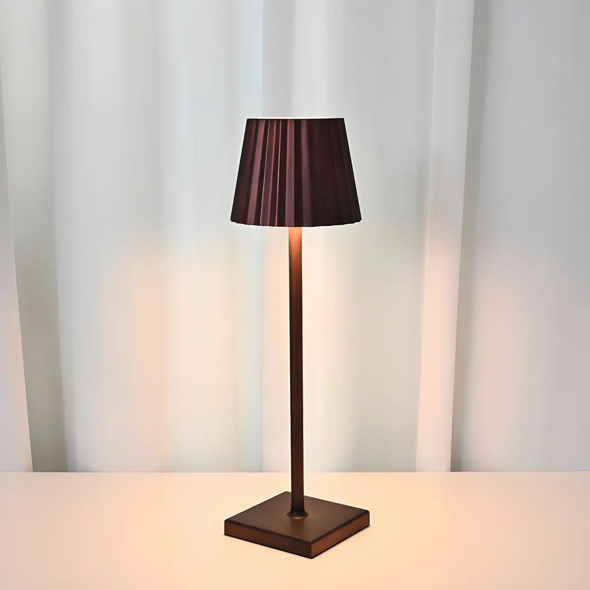 - The simple pleated lampshade design combined with the square base highlights the geometric beauty and exquisite craftsmanship.