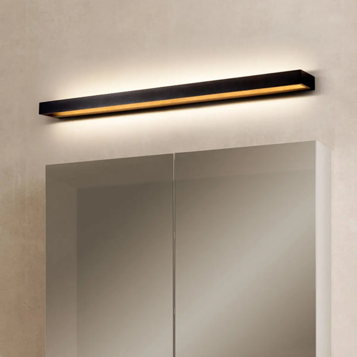 This modern rectangular metal vanity lamp is an ideal choice for your home space with its simple design and elegant appearance. Made of high-quality metal material with a classic black finish, it is suitable for installation in the bathroom, hallway or anywhere soft light is needed. This lamp not only emits elegant lighting but also adds a stylish touch to the space.