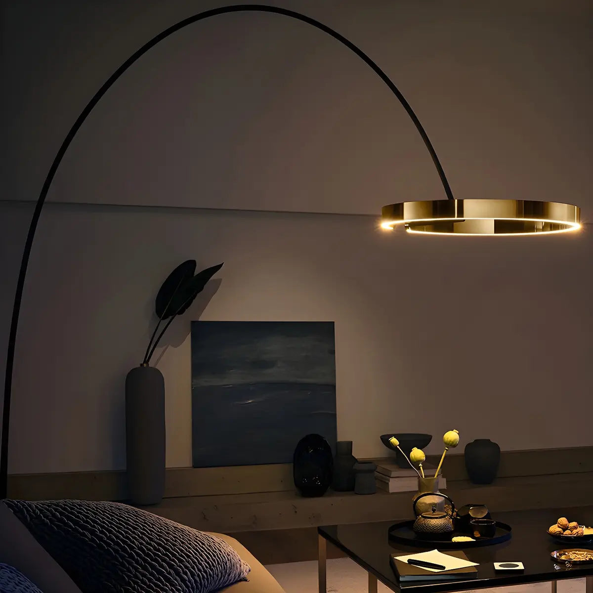 ZOWALA - Modern Black Ring Arc Floor Lamp