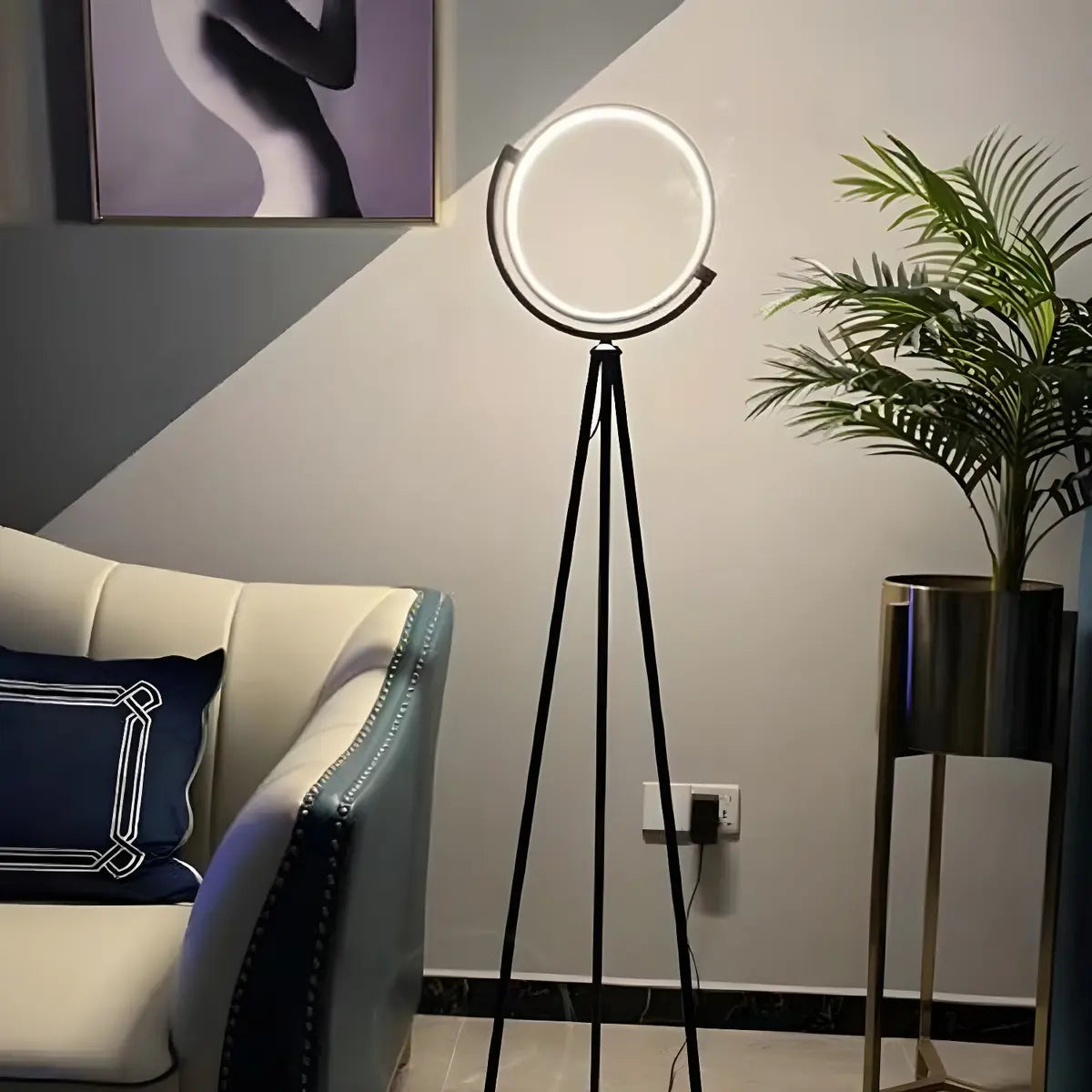 ZOWALA - Modern Black Tripod Circular LED Floor Lamp