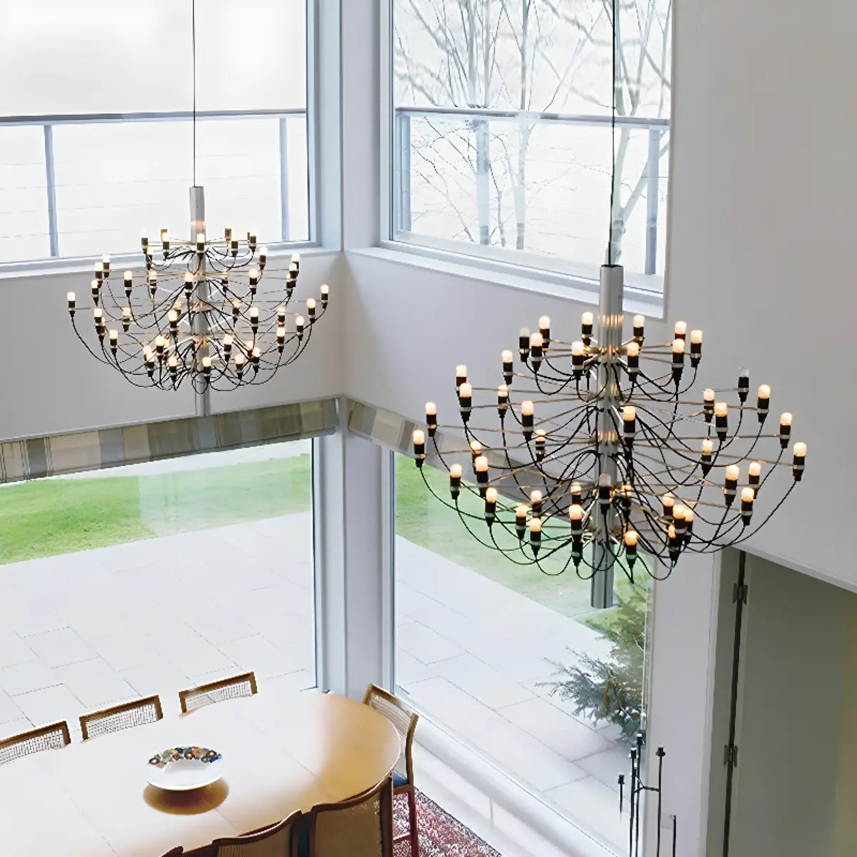 This modern starburst chandelier will make any space look modern and luxurious with its elegant design and generous size. Its starburst shape makes it a great choice for halls and spacious dining rooms.