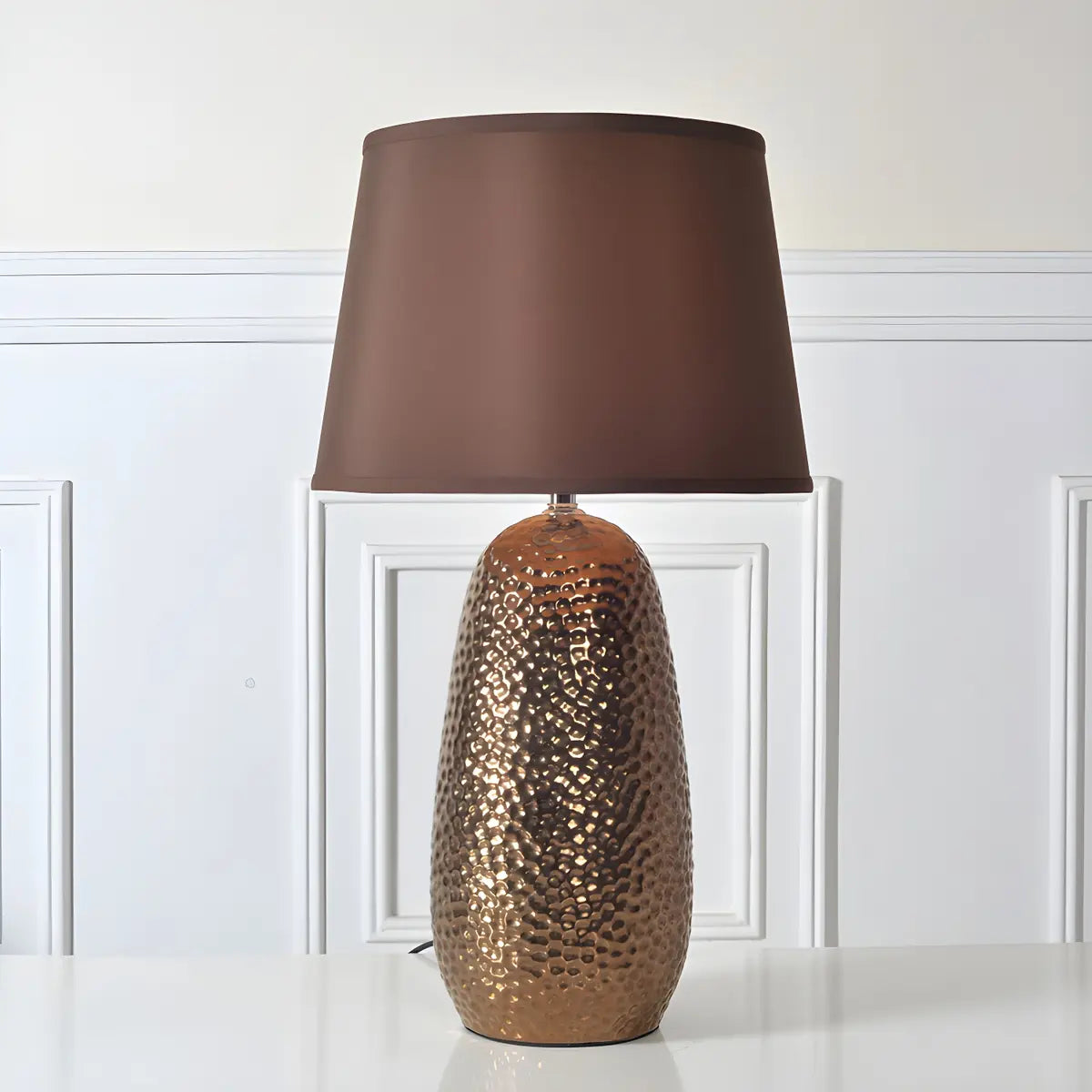 ZOWALA - Modern Brown Fabric Rippled Gold Ceramic Table Lamp