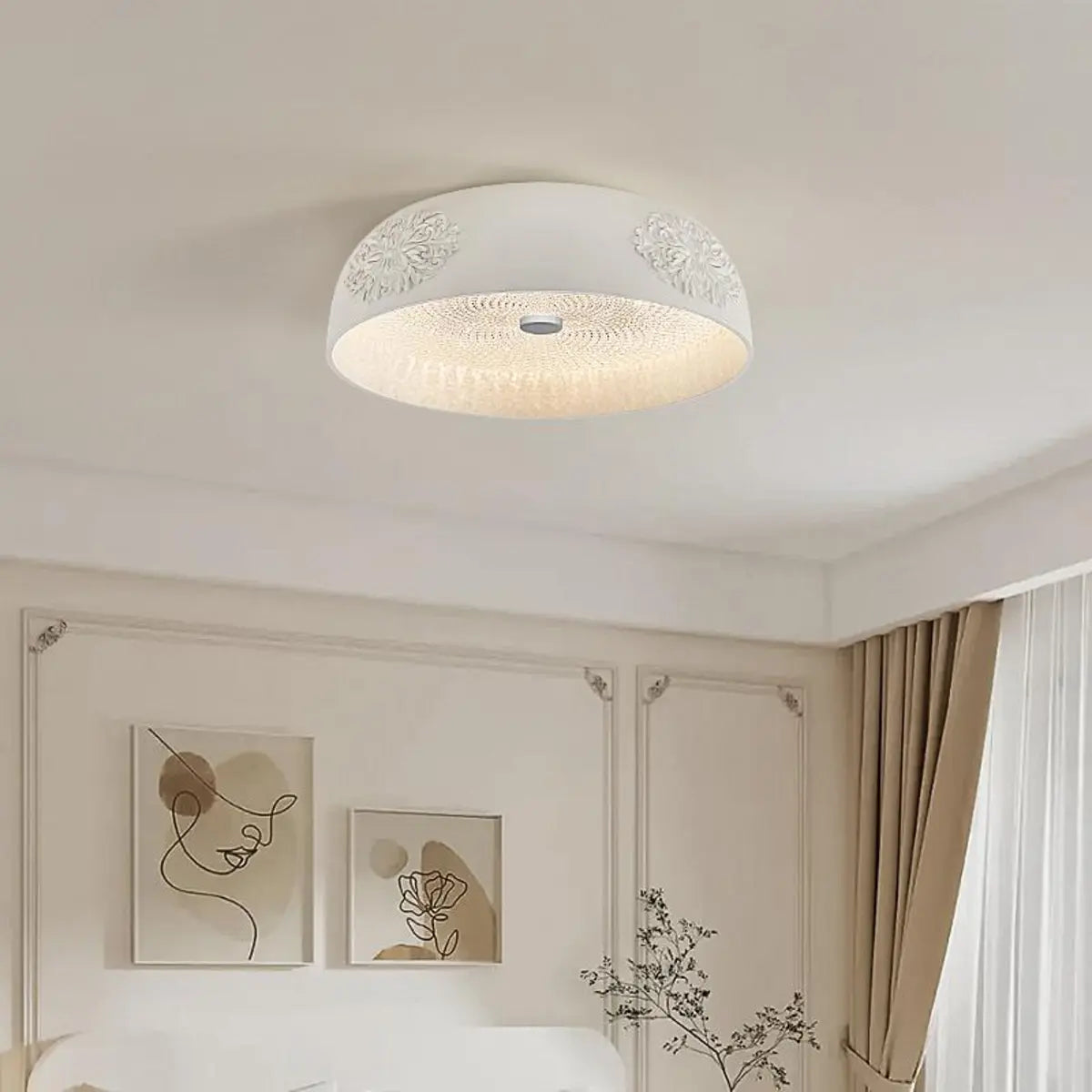 ZOWALA - Modern White Carved Metal Dome Ceiling Light