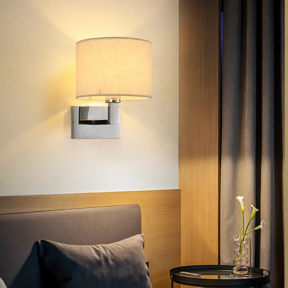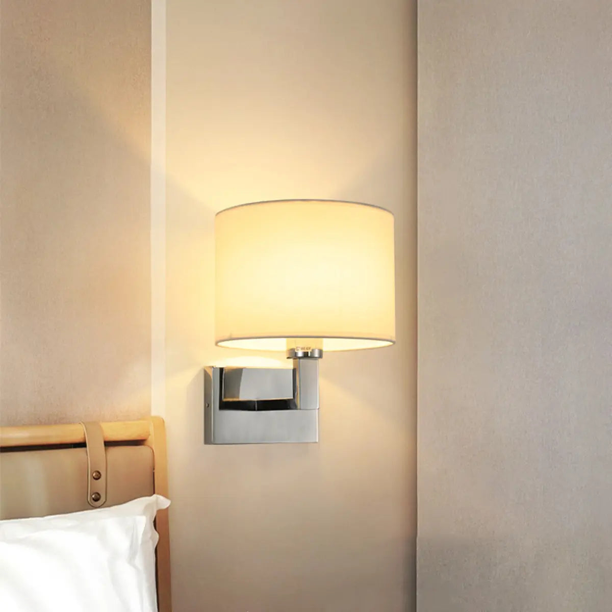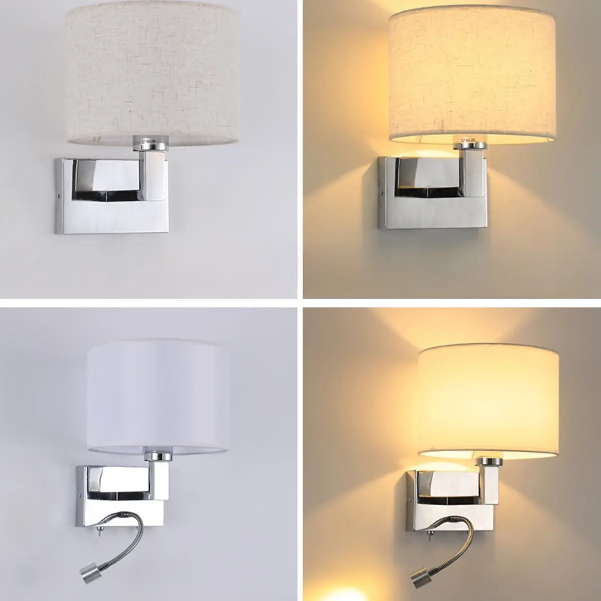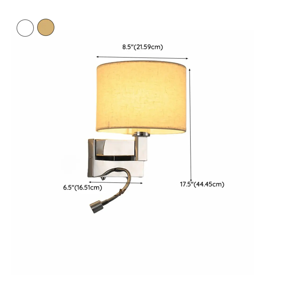 ZOWALA - Modern Chrome Beige Fabric Barrel Wall Lamp