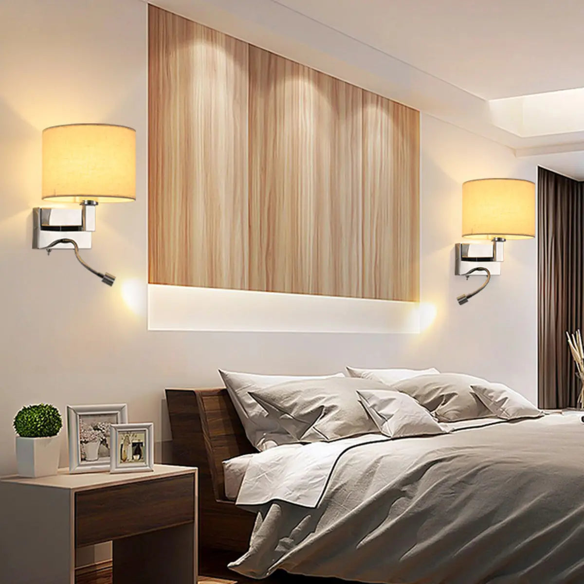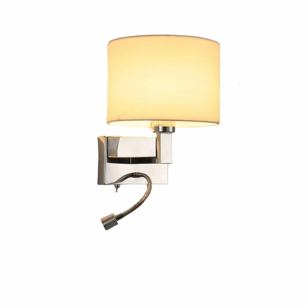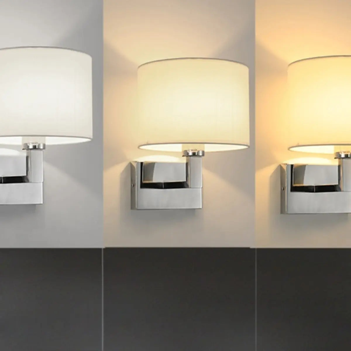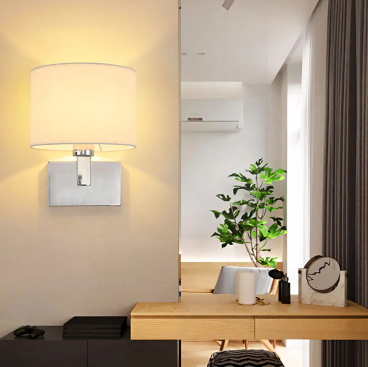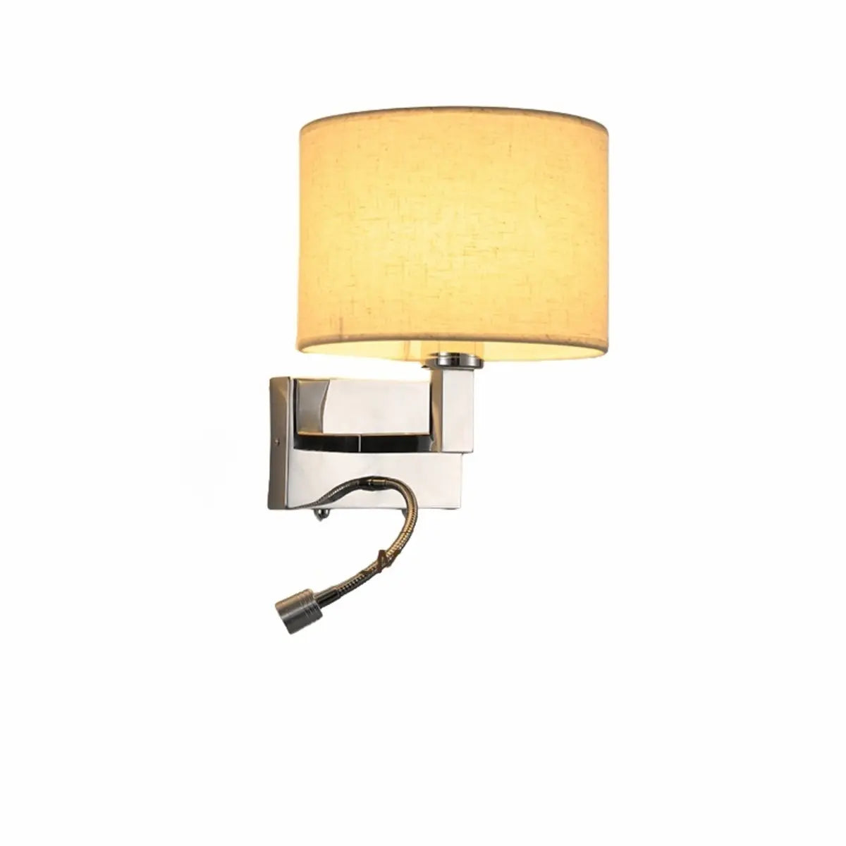 ZOWALA - Modern Chrome Beige Fabric Barrel Wall Lamp