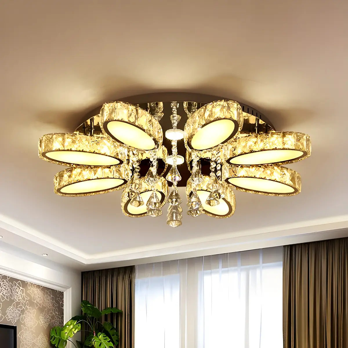 ZOWALA - Modern Chrome Crystal Blossom Semi-Flush Mount Light
