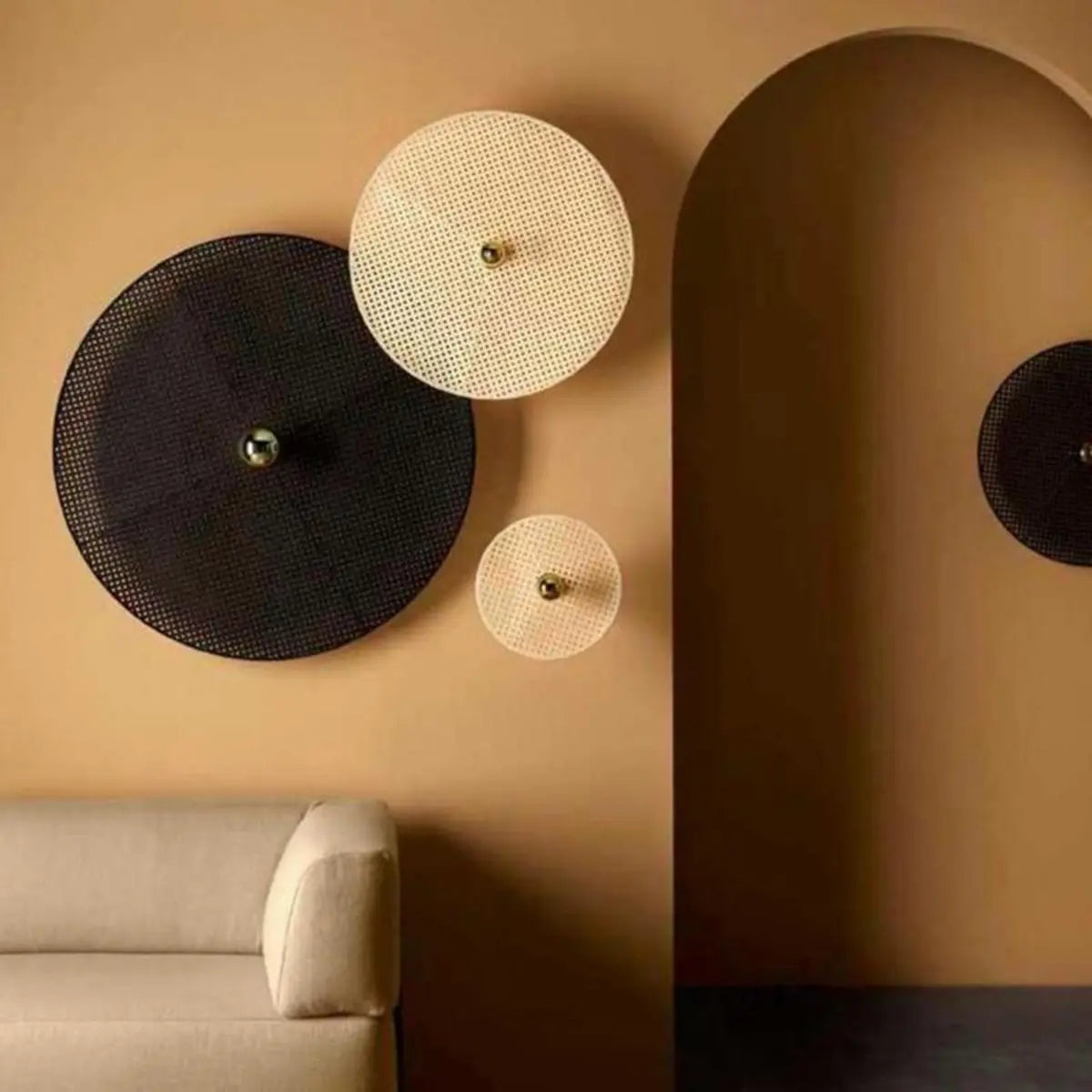 ZOWALA - Modern Circle Rattan Yellow Wall Sconce