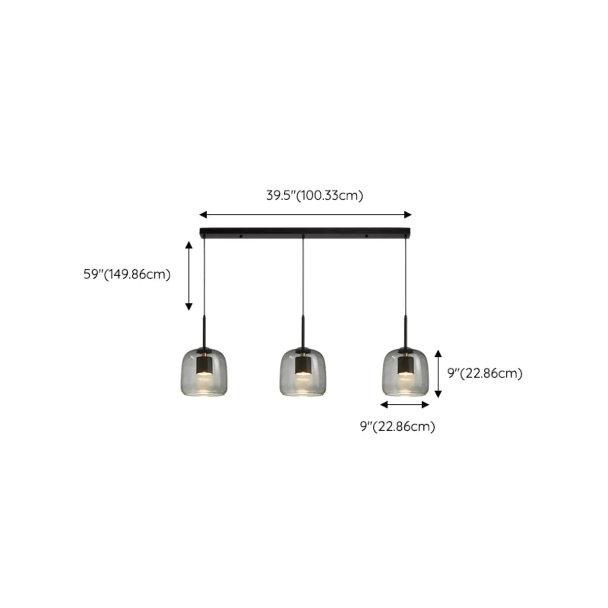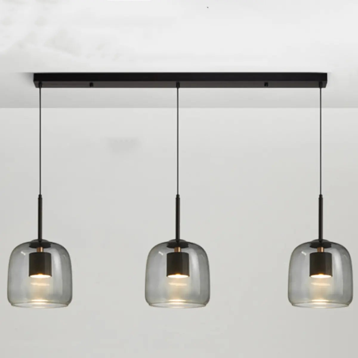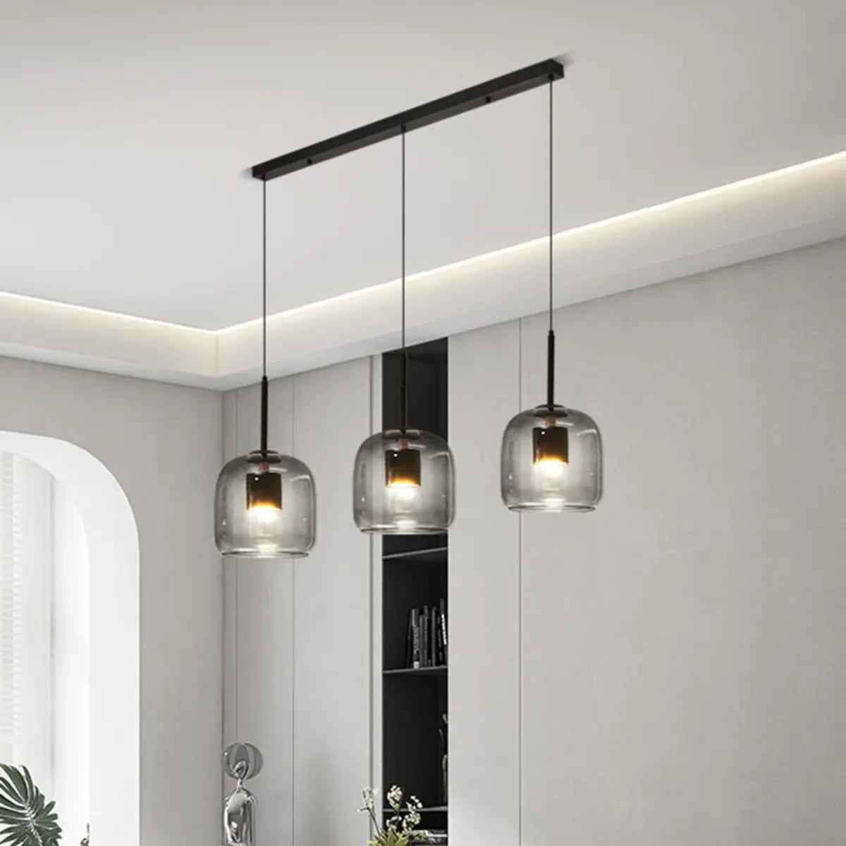 This pendant light displays a minimalist modern style, combining transparent glass with black metal to create an elegant and understated aesthetic. Its rounded dome lampshade not only effectively diffuses the light but also adds a visual layering to the space, giving the kitchen area a sophisticated decorative effect.