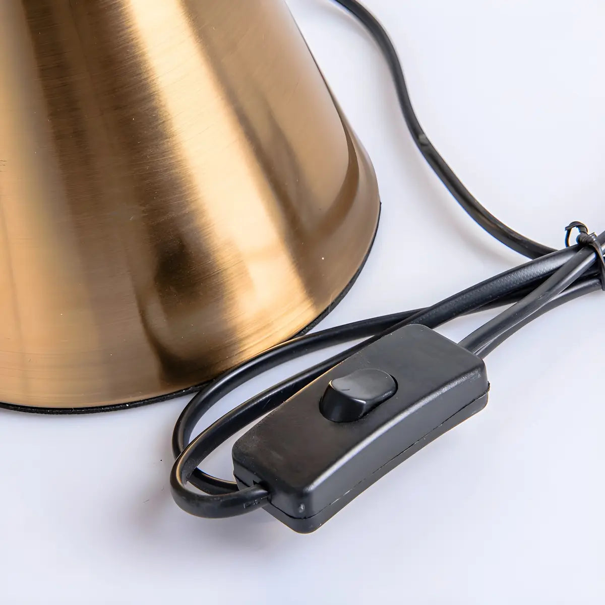 This table lamp is the perfect choice for home decoration with its modern design and exquisite craftsmanship. The golden metal material and unique conical glass lampshade add a fashionable touch to the space.